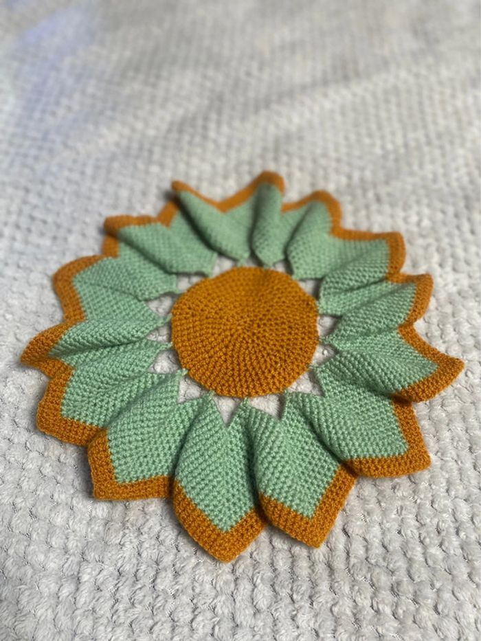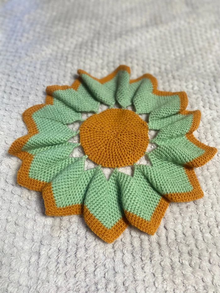 Vintage napperon fleur en laine. Diamètre 30 cm.