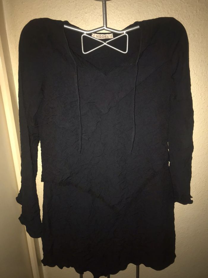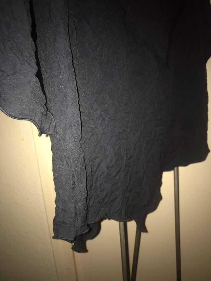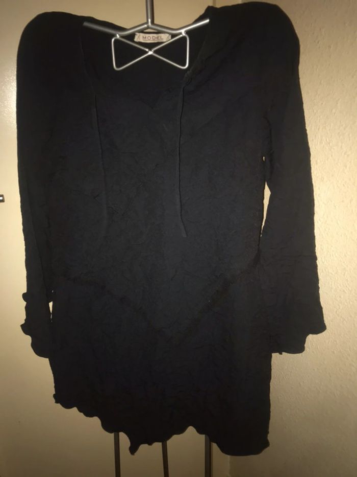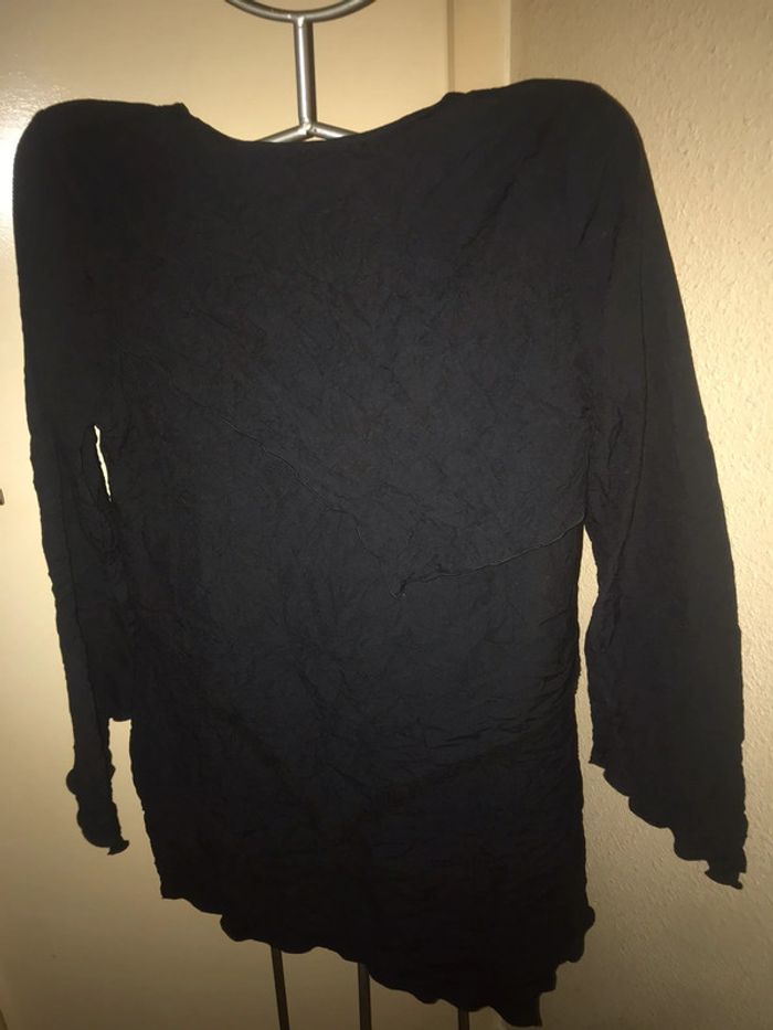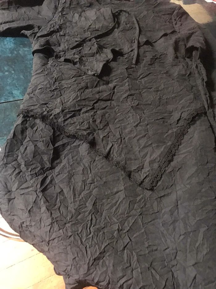 Haut tunique noir effet froissé manches évasées. Encolure avec un lacet.