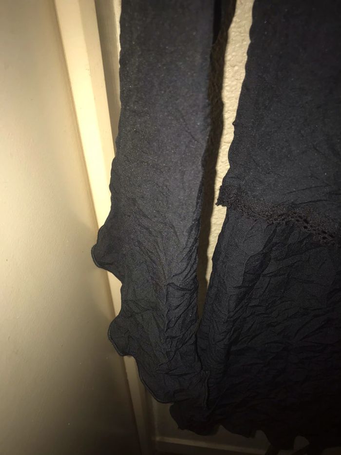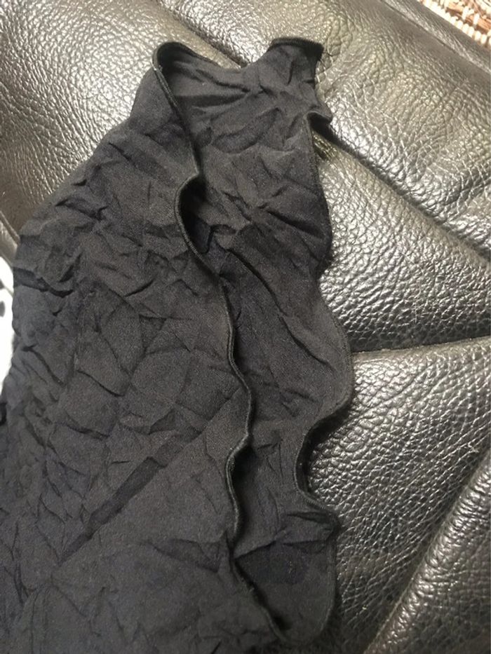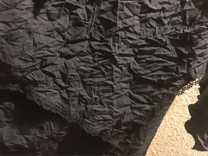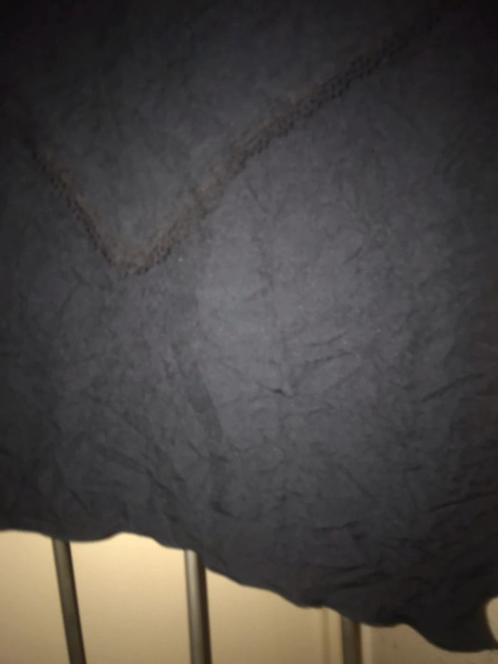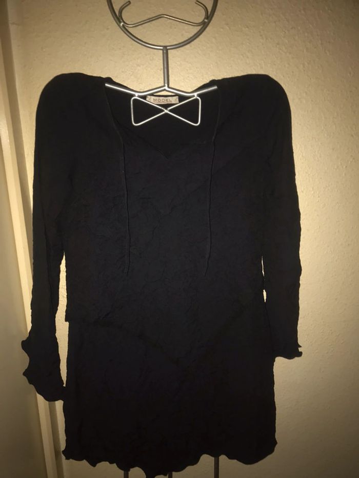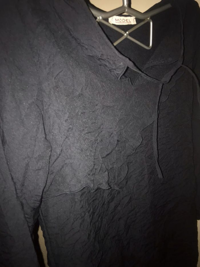 Haut tunique noir effet froissé manches évasées. Encolure avec un lacet.