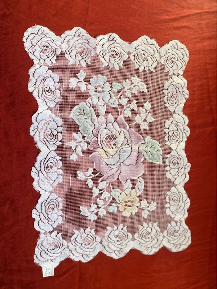 Napperon carré motifs fleurs colorées. Longueur 45 cm. largeur 32 cm