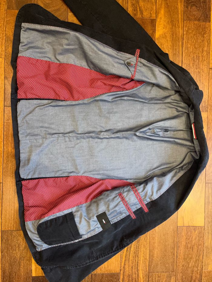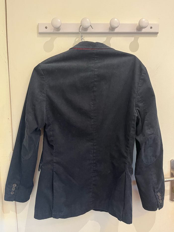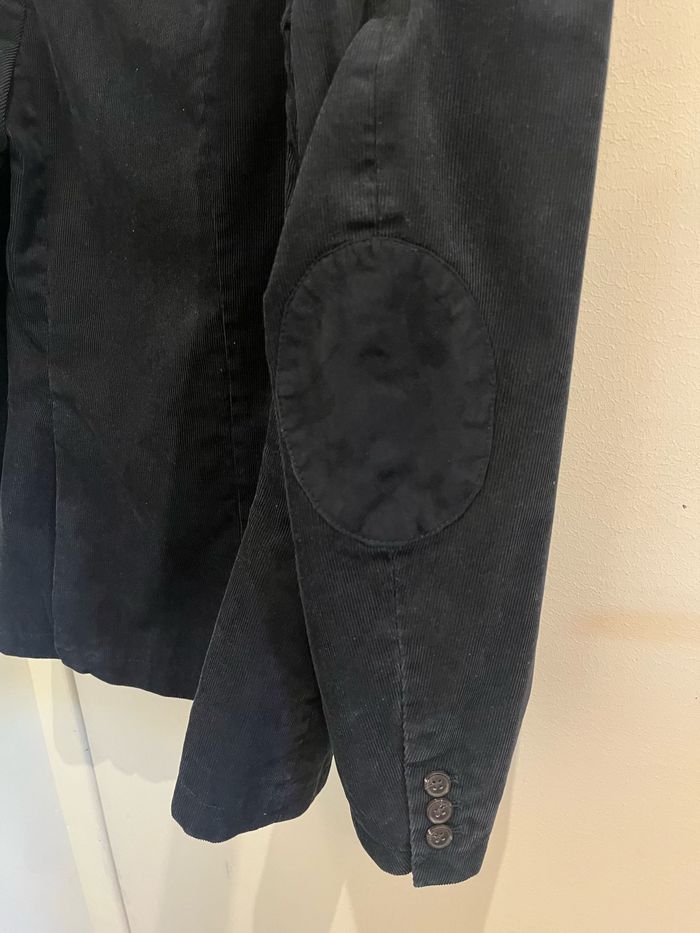 • Blazer/ veste manches longues en velours bleu foncé. 2 boutons à l’avant et boutons sur les manches. 2 poches à l’avant et plusieurs l’oscars à l’intérieur. Détail rouge dans les manches. Fentes prêtes à être coupées au dos. Patch aux coudes. En très bon état • celio, sûrement une taille M, merci de vérifier les mesures • 44 cm entre les épaules, 45,cm entre les aisselles, 70cm de longueur