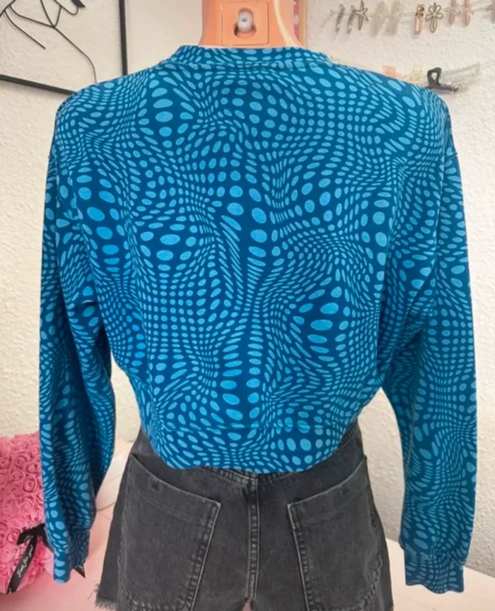 Sweat bleu court à motifs taille S - photo numéro 1