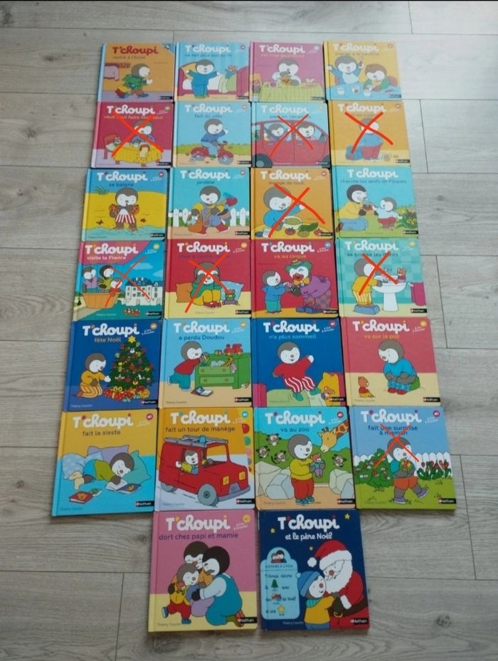 Gros lot de 18 livres T'choupi en excellent état comme neuf. Juste un en bon état celui de l'école. Non négociable.