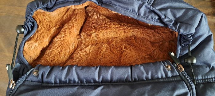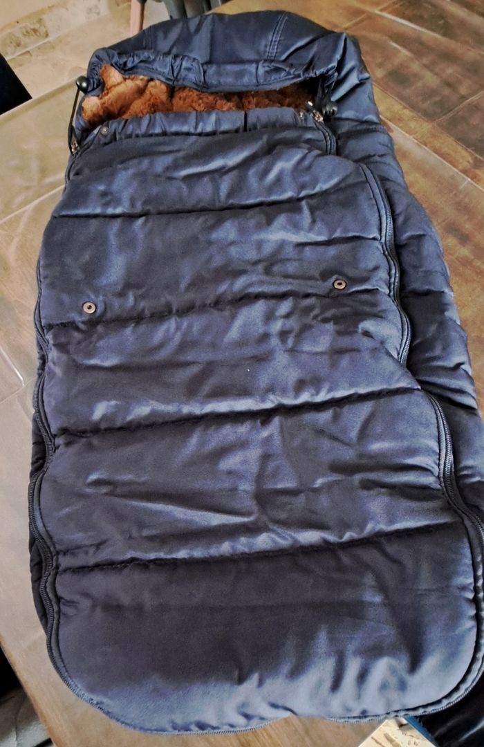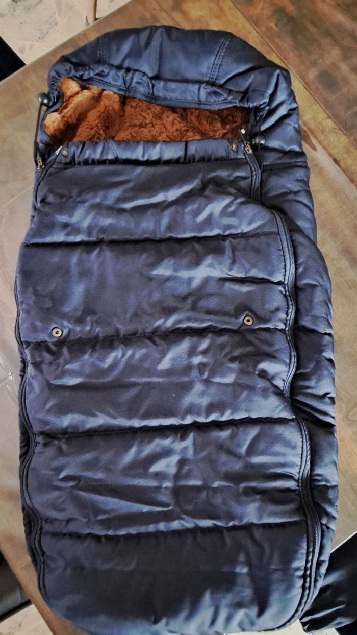 Chancelière en fausse fourrure. Marque premaman (orchestra) Dimensions 95x47x19 S'adapte très facilement à tout type de pousettes grâce aux différents passants des sangles. Fermeture zippé qui s'ouvre intégralement, très pratique pour installer l'enfant. Etanche et imperméable. Vendue avec la housse de rangement. Très peu utilisée, état neuf