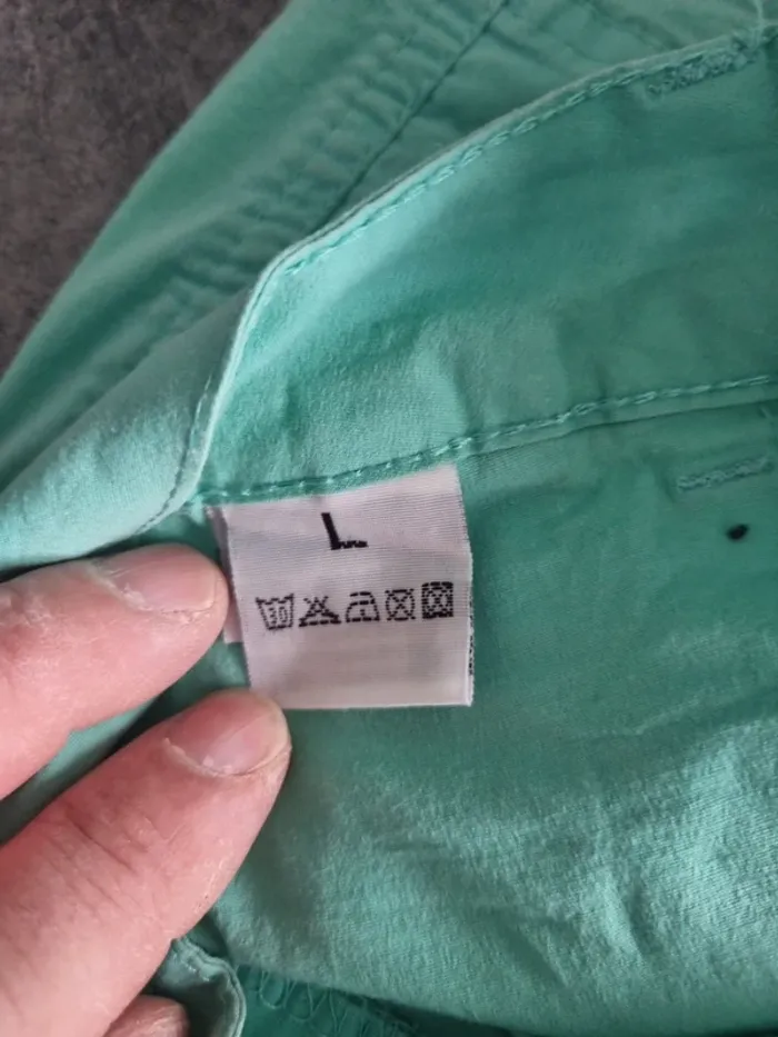 Short femme Coloris vert d'eau Plusieurs poches Bouton + fermeture éclair pour fermer le short Short élastique Léger, idéal pour l'été Marque : E&D Composition : 95% coton, 5% élasthanne Taille : L / 40 Etat : Très bon état Envoi ou remise en main propre Pour voir des annonces similaires : #robotick_shorts_pantacourts #robotick_taille40 #shortlégerfemme #shortfemme #taille40 #shortélastiquéfemme #ed