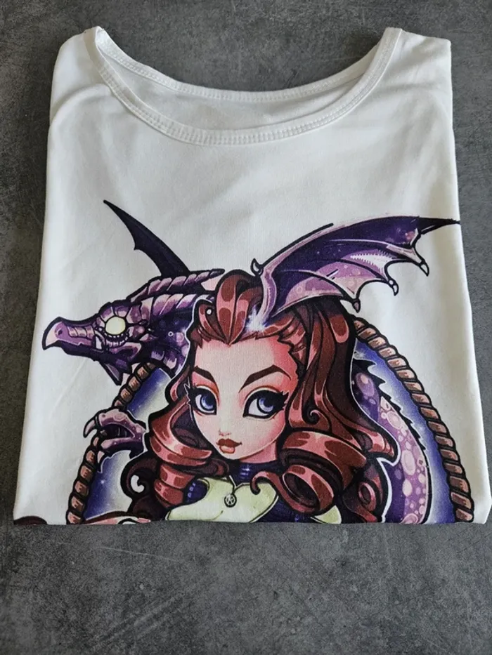 T-shirt à manches courtes femme - Taille XS / 34 (NEUF) - Blanc motif dragon - photo numéro 6