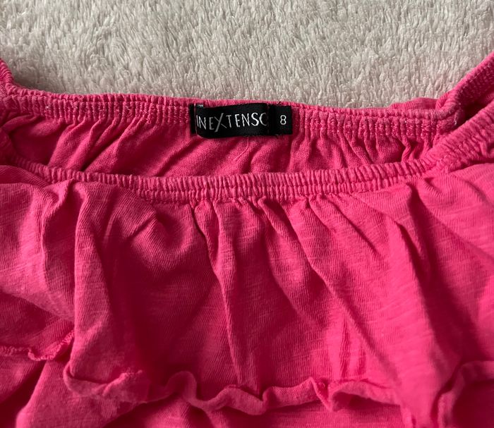 T-shirt In Extenso - 8 ans 👕 T-shirt pour enfant, taille 8 ans, de la marque In Extenso. Style : épaule dénudée Couleur : rose Idéal pour un look estival tendance et léger. 📏 Merci de bien vérifier les dimensions à l’aide du mètre visible sur les photos, pour éviter toute mauvaise surprise. 👉 N'hésitez pas à regarder mes autres annonces pour grouper vos achats 😉 Une réduction automatique est appliquée pour les lots. Je n'accepte donc pas d'offres supplémentaires sur les articles bénéficiant déjà d'une remise.
