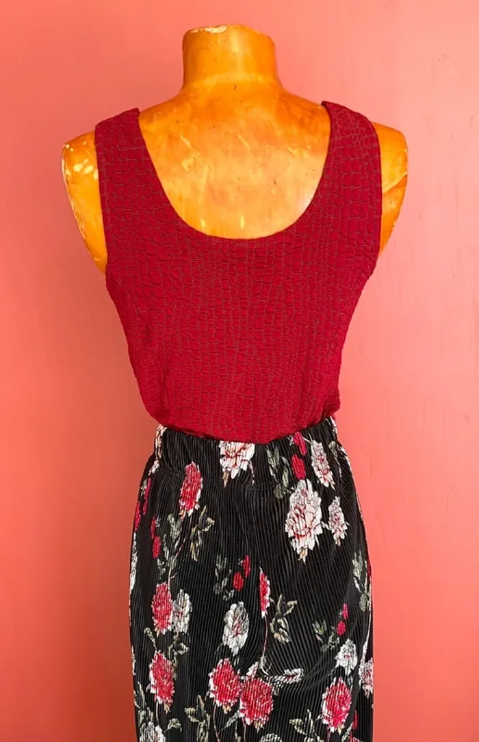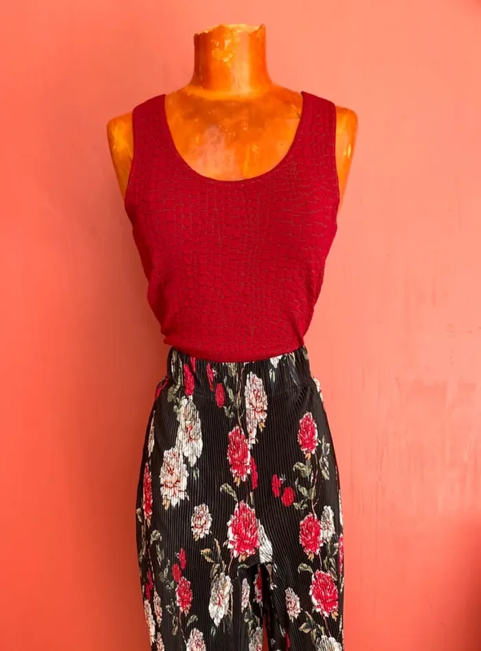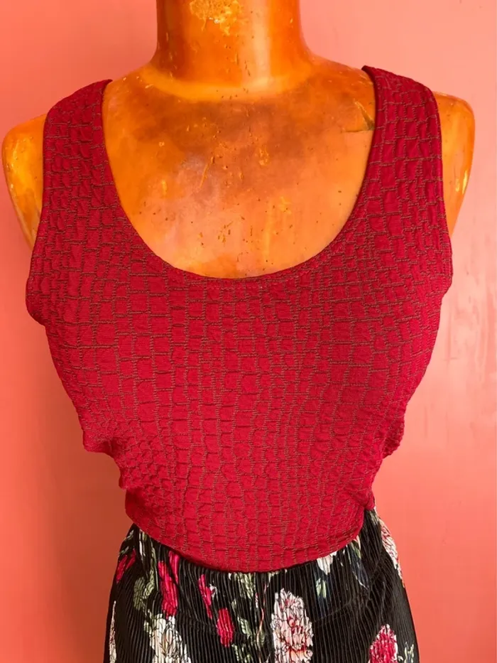 Top original avec jolies couleurs rouge et kaki Effet « croco » avec écailles Larges bretelles Col rond #ac2107taille38 #ac2107haut #top#croco#red#jacquelineriu#original