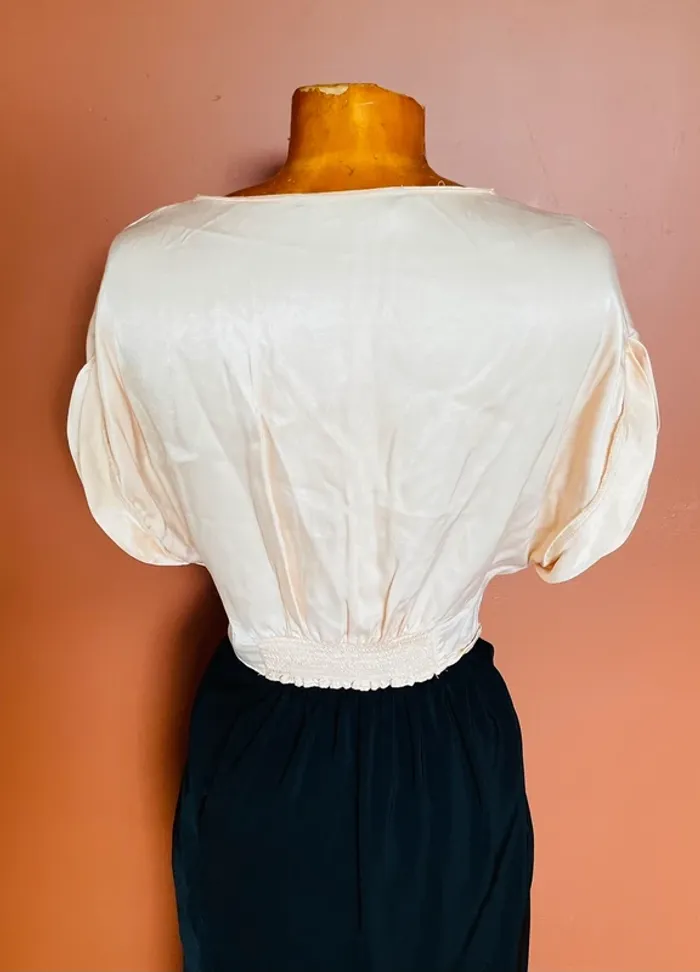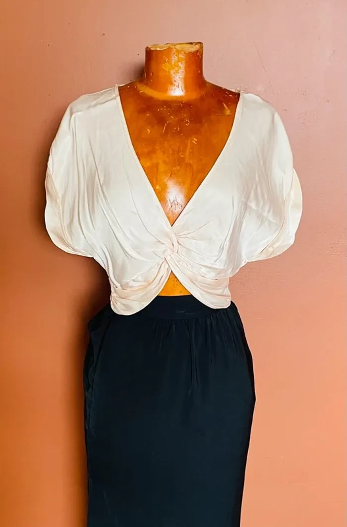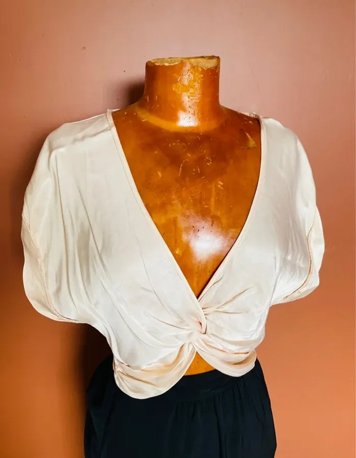 Élégante blouse à manches courtes Col V Effet de noeud croisé sur le devant Satiné Beige-rose poudré #ac2107taille34 #ac2107haut #croptop#satiné#summer#zara#34
