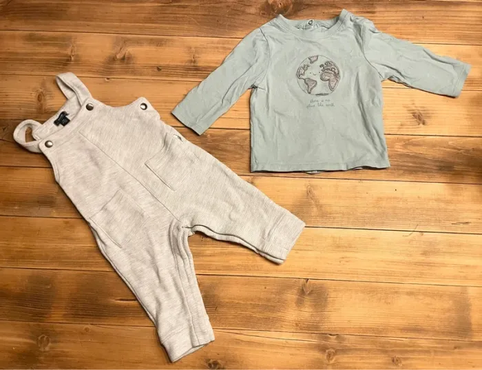 Ensemble salopette et tee shirt 9 mois - photo numéro 1