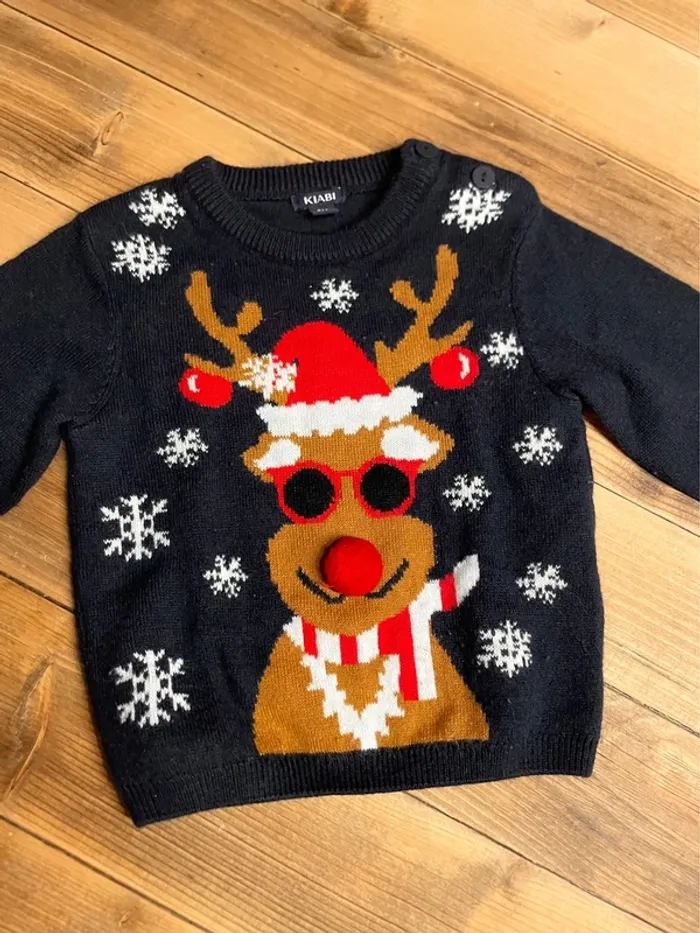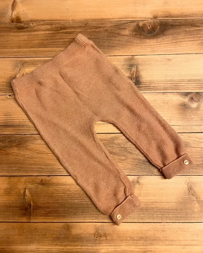 Joli ensemble composé de: - un petit pull de Noël bleu marine - un legging en maille camel en coton et laine Taille 9 mois #ac2107garçon9mois