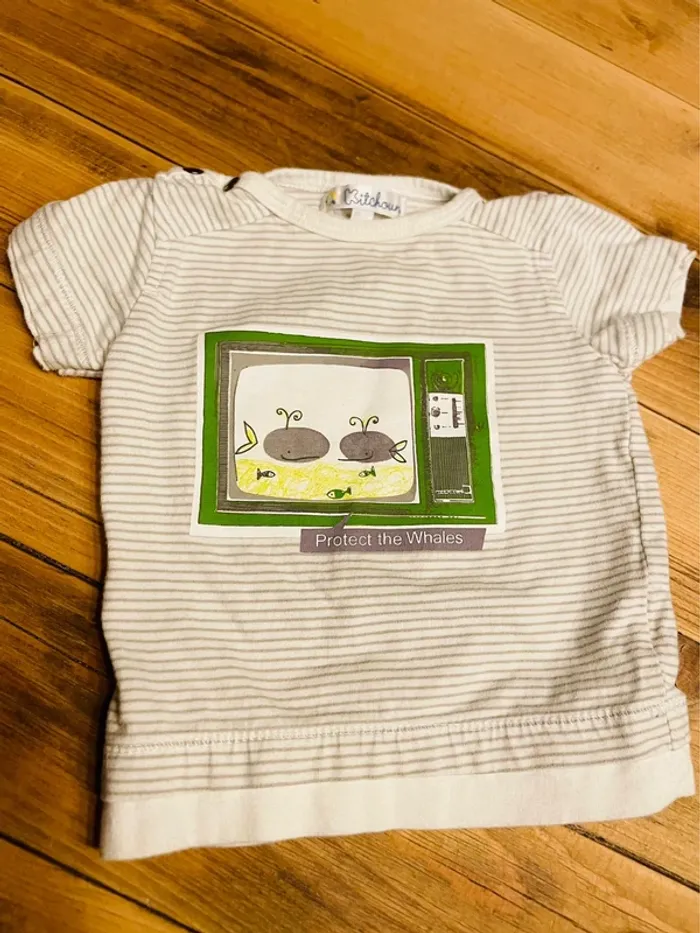 Élégant ensemble composé de: - une chemise manches longues, col Mao bleu ciel - un sarouel léger gris et cordon bleu ciel - un tee shirt marinière gris et blanc avec motifs devant Taille 3 mois #ac2107garçon3mois