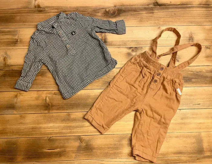 Ensemble chemise épaisse et salopette 9 mois - photo numéro 1