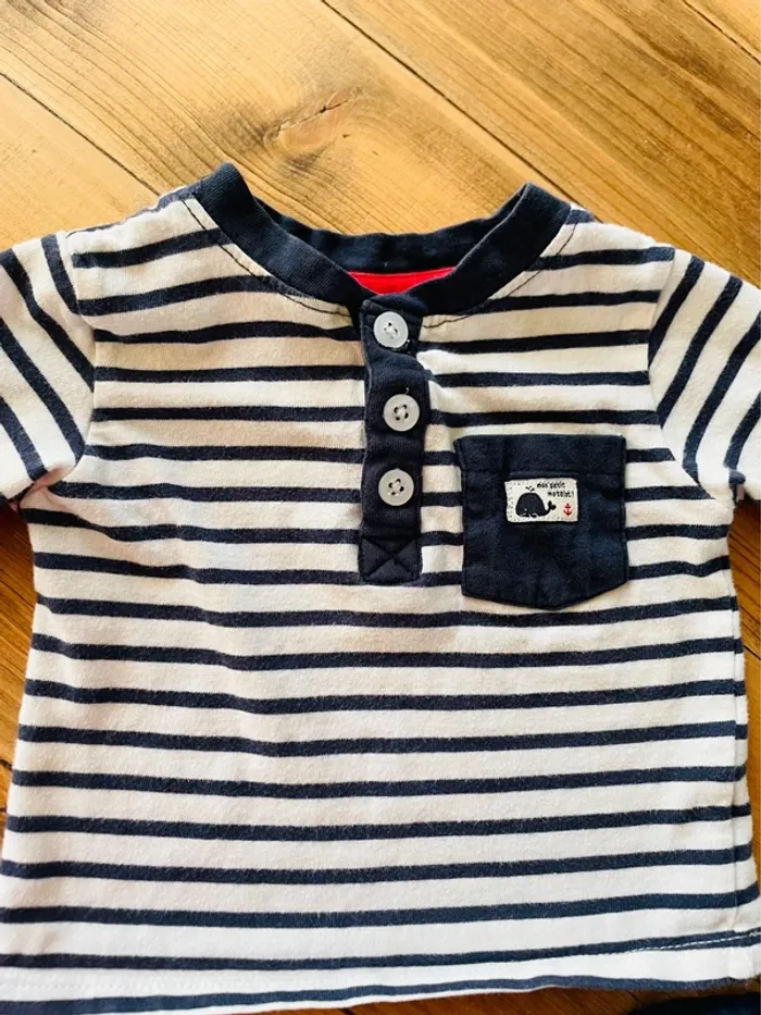 Ensemble pantalon en lin bleu et marinière 6 mois - photo numéro 3