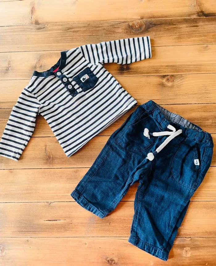 Ensemble pantalon en lin bleu et marinière 6 mois