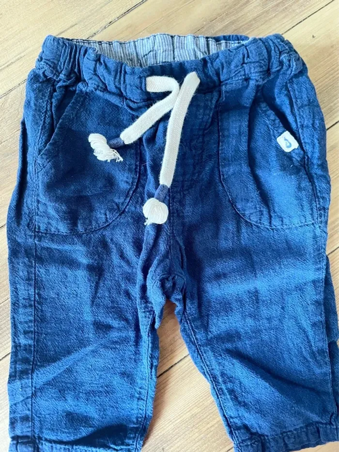 Ensemble pantalon en lin bleu et marinière 6 mois - photo numéro 1
