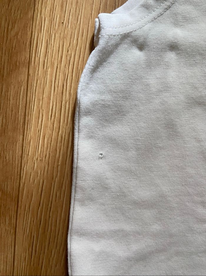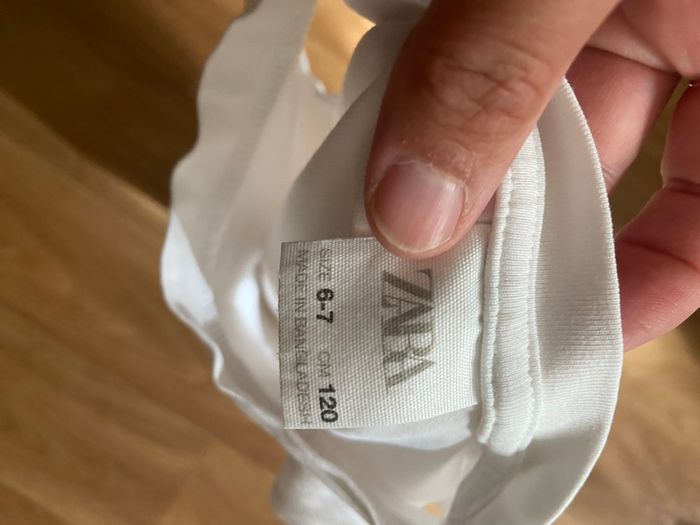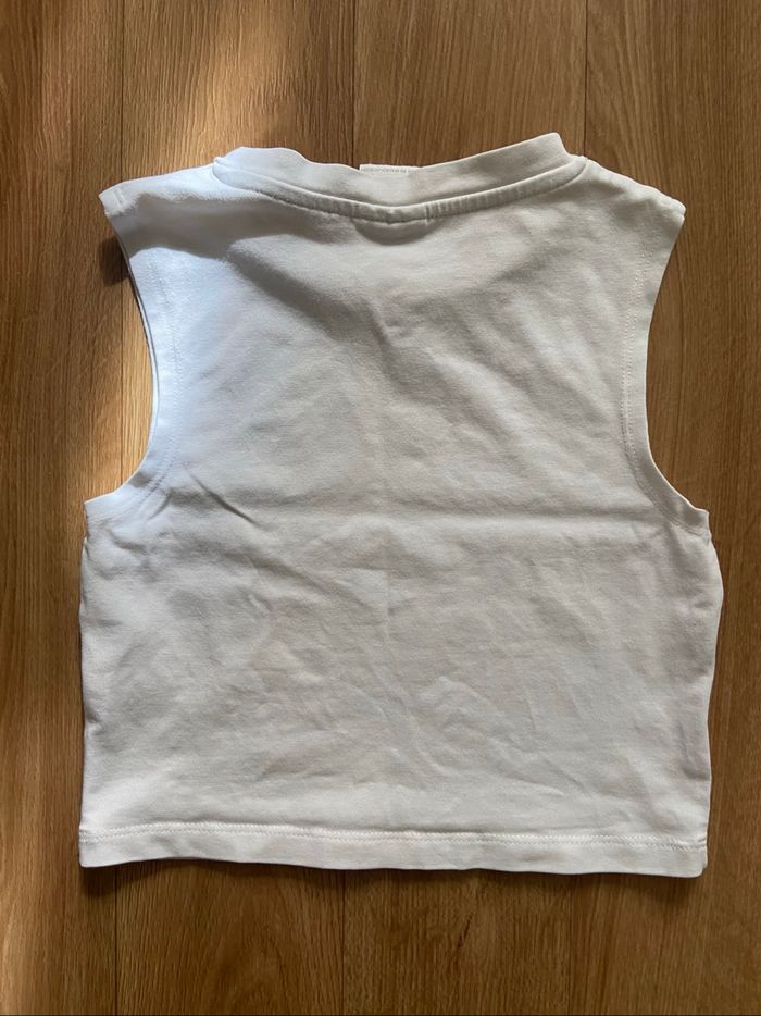 Haut court blanc pour fille 6/7 ans Très bon état juste un léger trou sur le côté dû sûrement à l’antivol voir dernière photo mais ne se voit pas pas porté