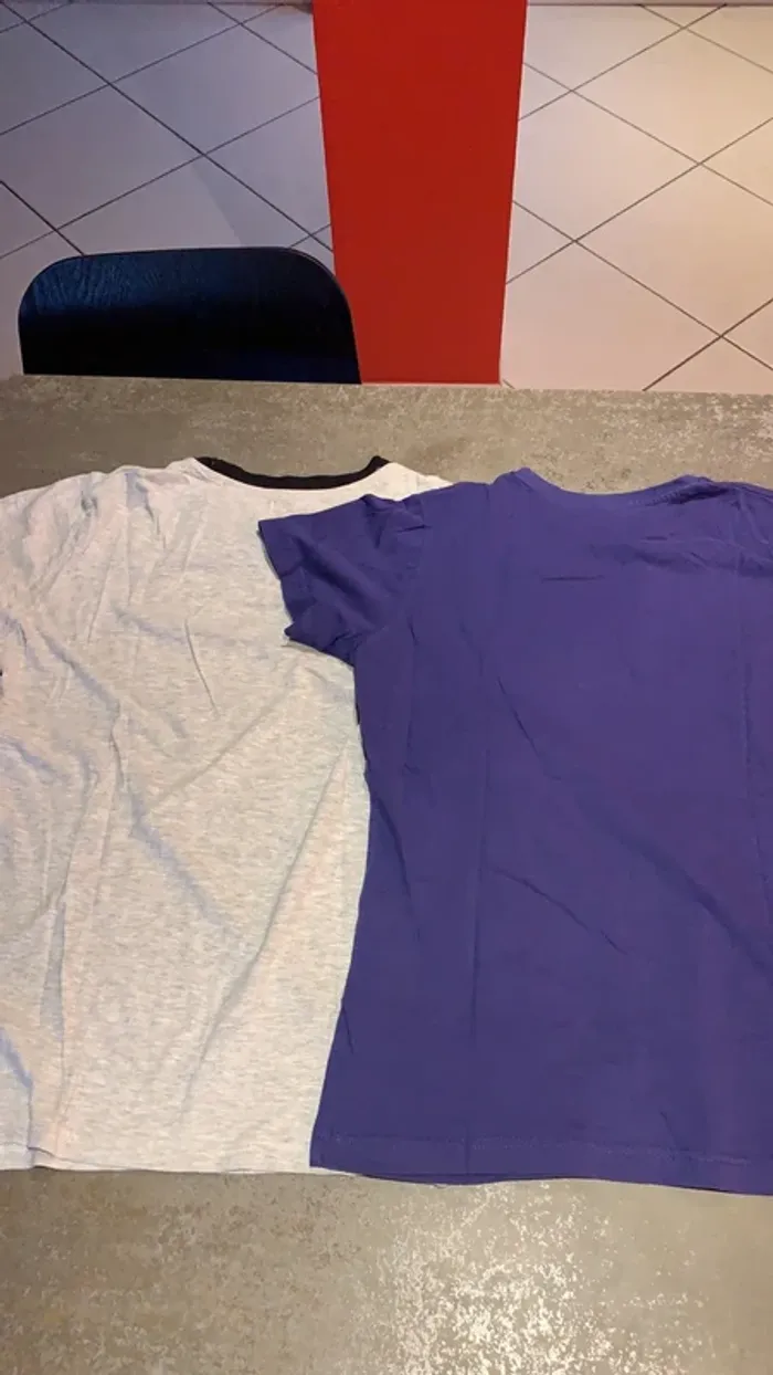Vends ces deux hauts de pyjama d’été manches courtes . Taille 16 ans . Un de marque Influx ( Cora ) l’autre je ne sais plus . A porter avec des shorts de nuit 😉! Voir photos pour les détails . Un gris uni dos et un bleu uni dos aussi . Le lot 5€