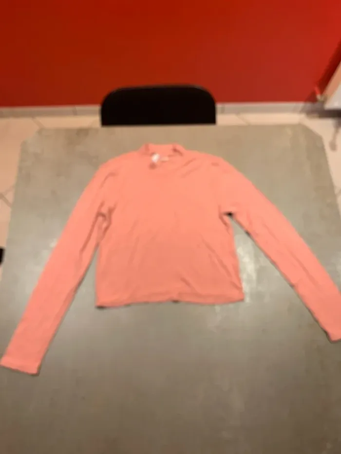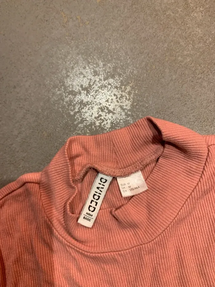Vends ce haut à manches longues H&M Divided couleur vieux rose, col droit rond , en taille M . Il est en 96% viscose et 4 % élasthane. Longueur des manches 55cm
