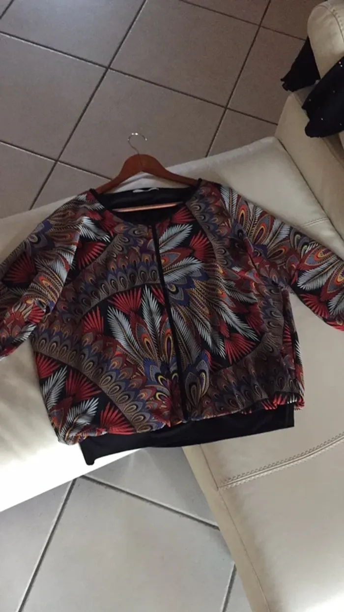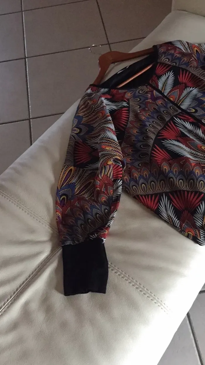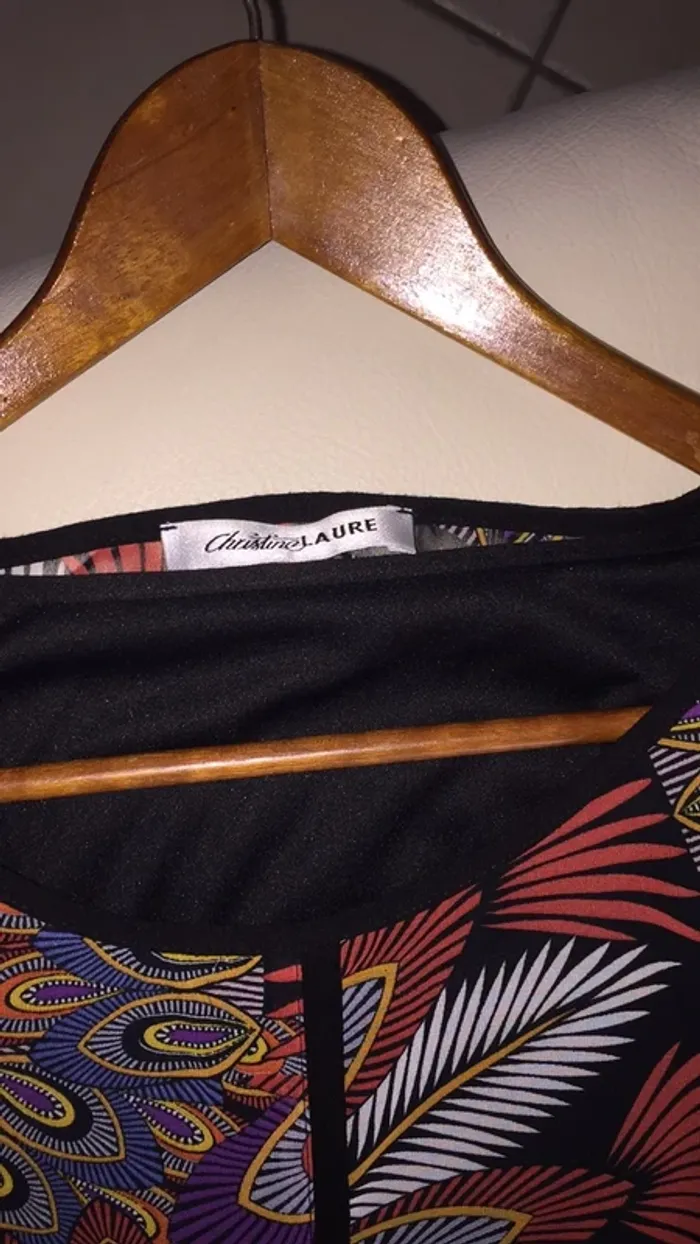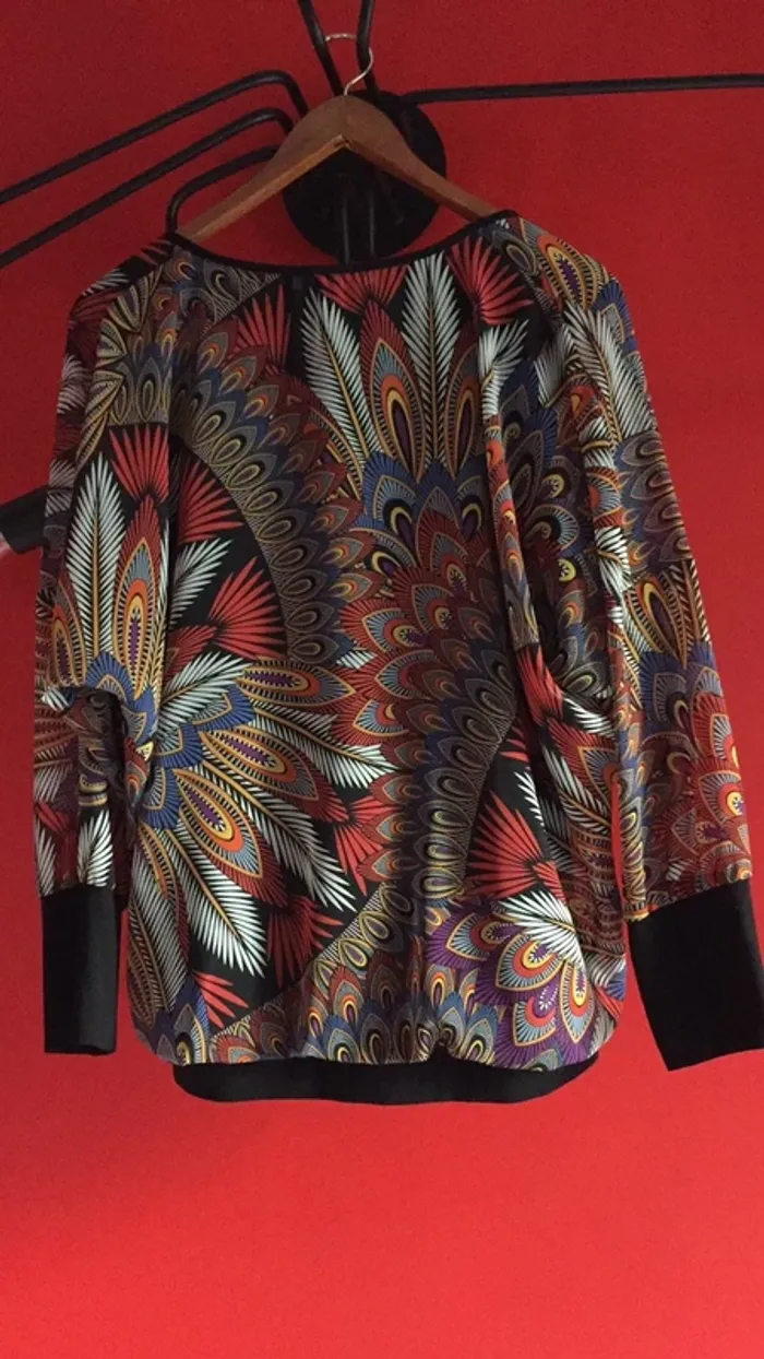 vends une magnifique blouse ( chemisier ou top ) de la marque Christine Laure 👌en taille 4 ( et non pas : xxxxl ) . Bordure en bas et poignets en (noir uni ). Retombe en blousant … Elle est en viscose et Elasthanne et le restant en 100% polyester.... Doublée pour ne pas que ce soit transparent sauf dans les manches ( voir photo 5 visible ) . la doublure est attachée aux épaules, et cousue en bas . Très beau rendu habillé chic 👌. Elle est en parfait état mais hélas trop petite 😢. Si besoin de mesures ( dessous de bras à l’autre , couture épaule à épaule , longueur de la blouse et longueur manches, demandez moi 😏)