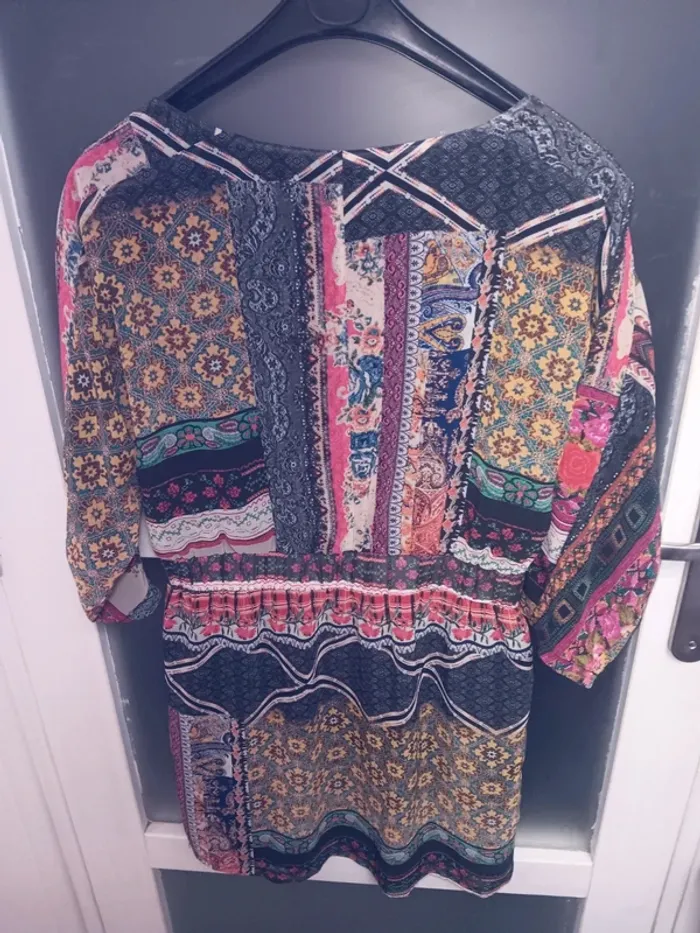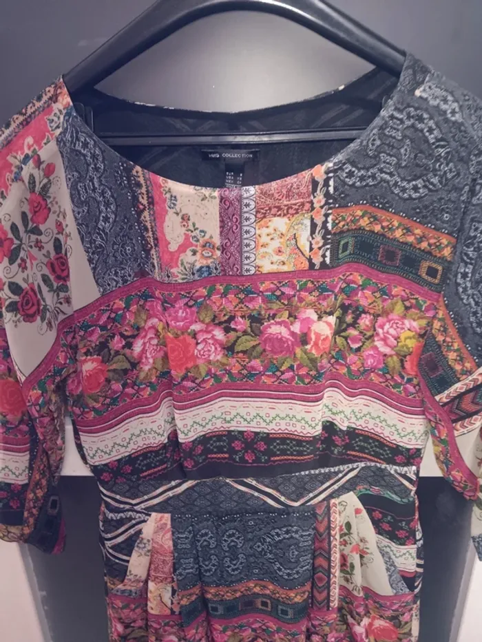 Robe  taille S bohème Mango fleurs multicolores manches 3/4 - photo numéro 2
