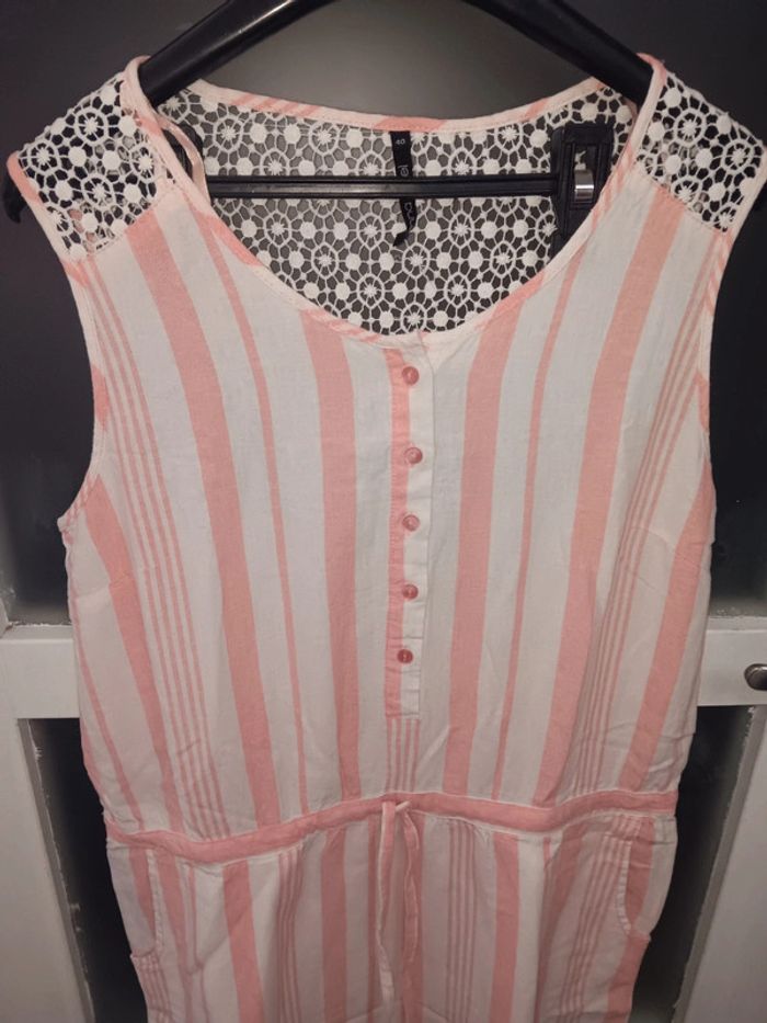 Robe d’été rayée corail taille 40 avec dentelle épaules - photo numéro 2