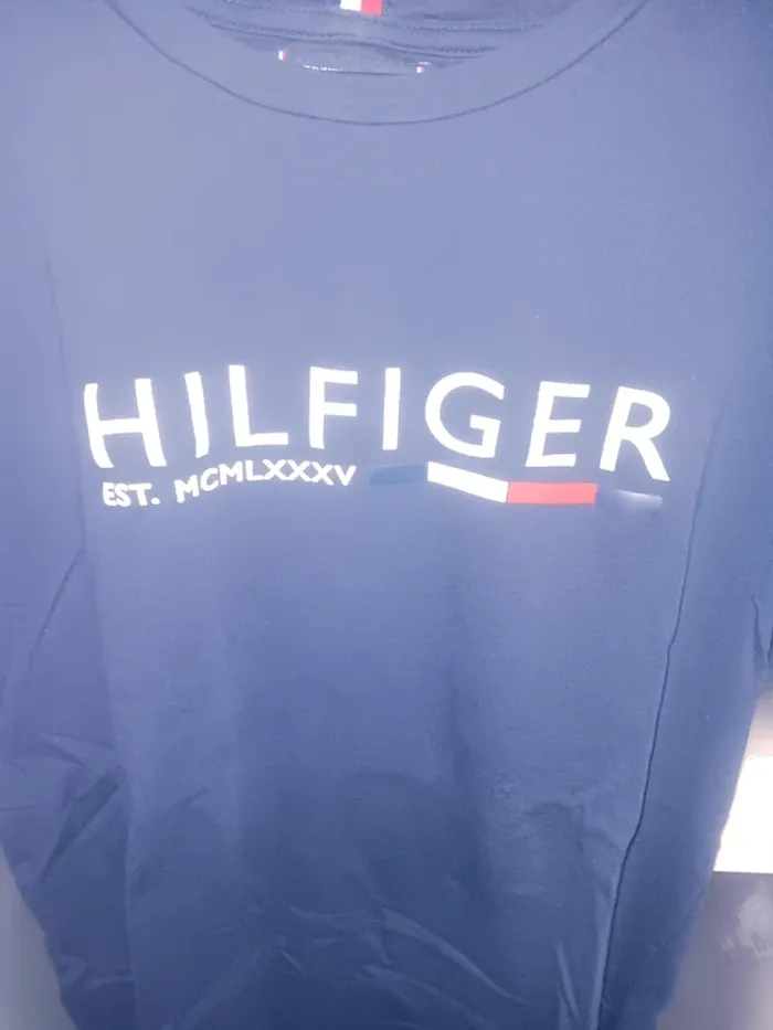 T-shirt Hilfiger taille L bleu marine logo brodé, taille adulte - photo numéro 1