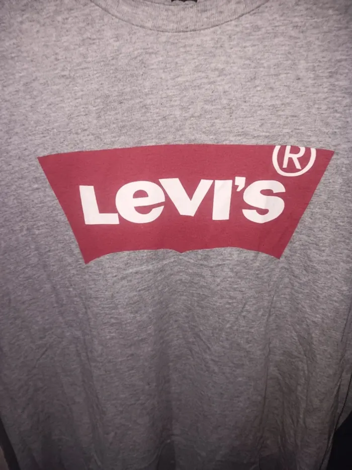 T-shirt gris Levi’s, logo rouge et blanc sur le devant, modèle classique, en tres bon état général, manches courtes, idéal pour un style décontracté. Taille S