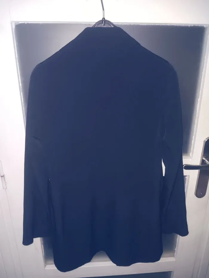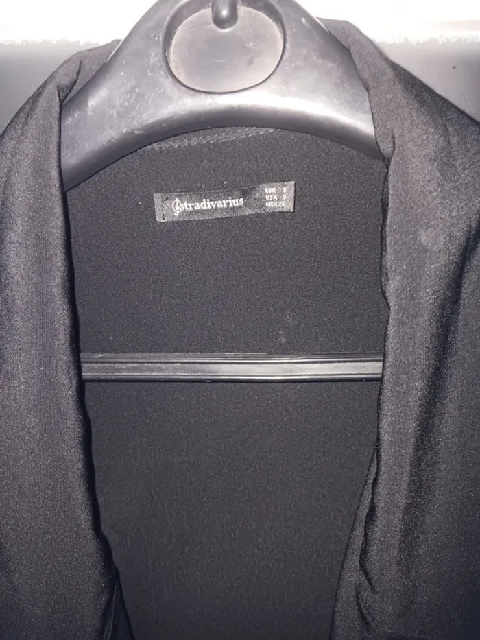 Veste noire pour femme, marque Stradivarius, taille S, en tres bon état général, sans motifs, coupe classique, idéale pour une tenue habillée ou professionnelle.