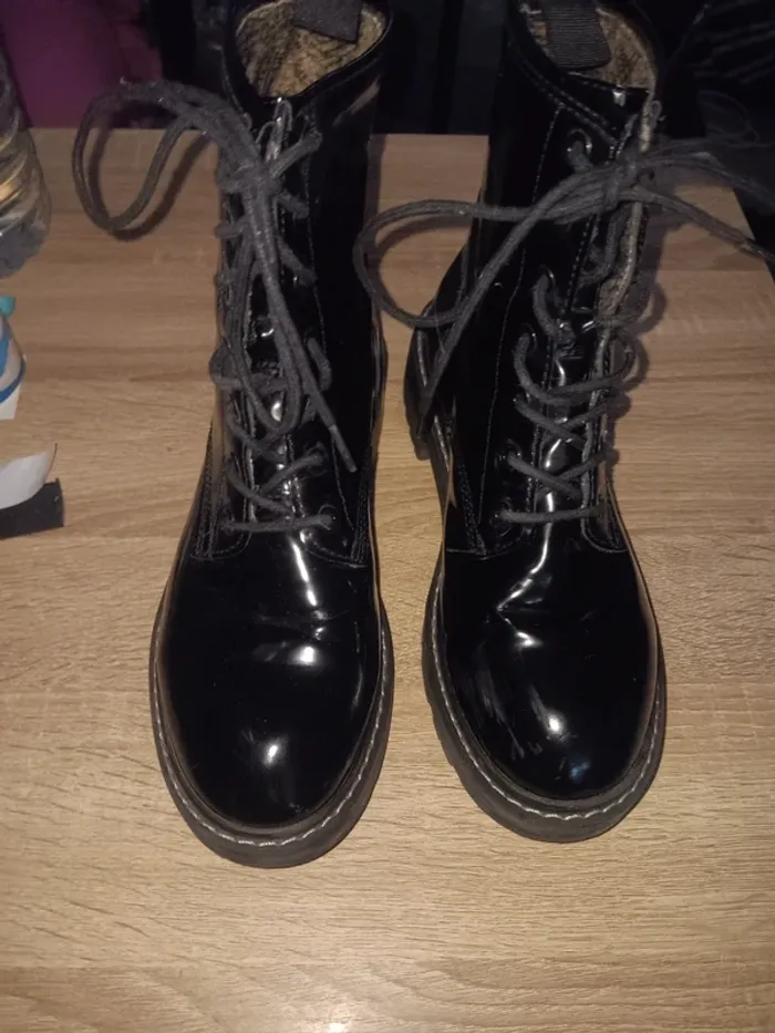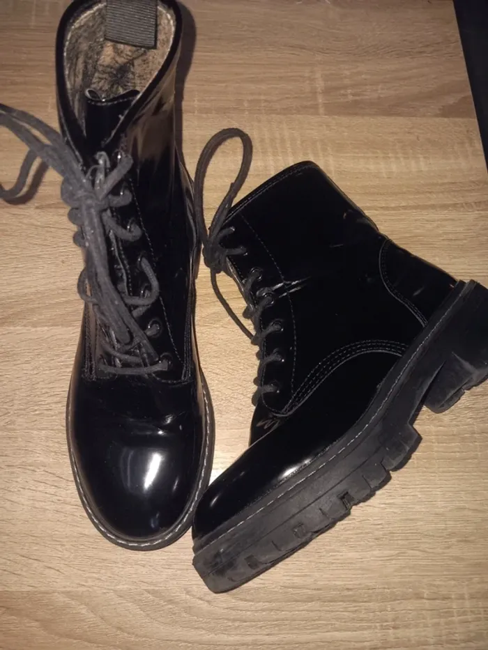 Bottines noires vernies à lacets style combat taille 37 - photo numéro 1