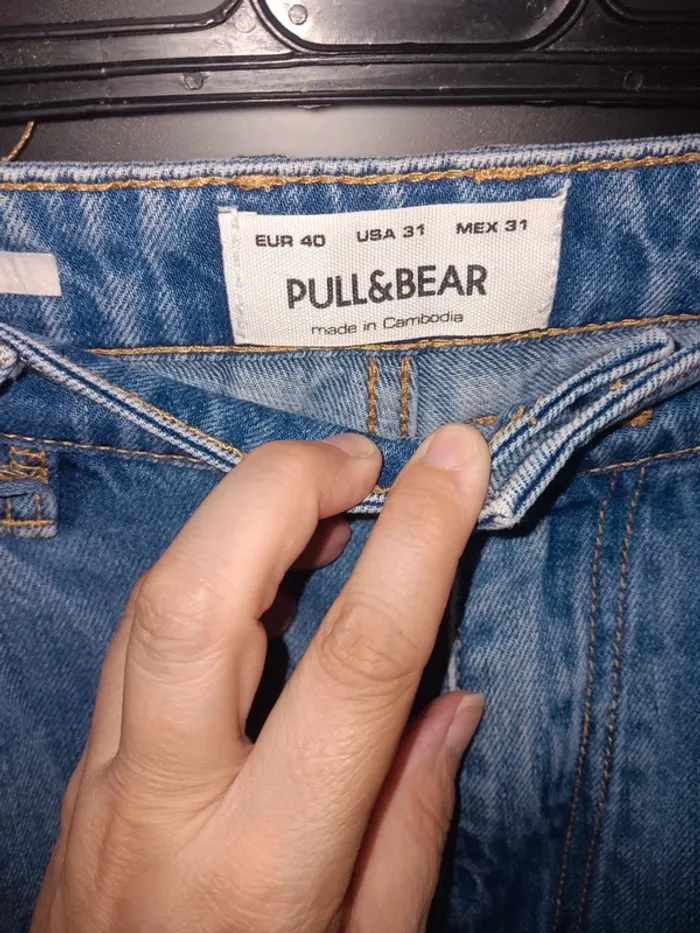Jean Pull&Bear, taille EUR 40/USA 31, en denim bleu, fabriqué au Cambodge. État tres bon, coutures en tres bon état, modèle classique sans usure apparente.