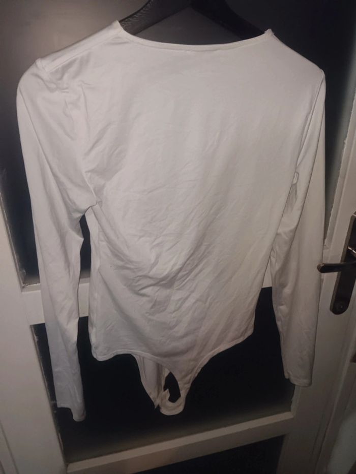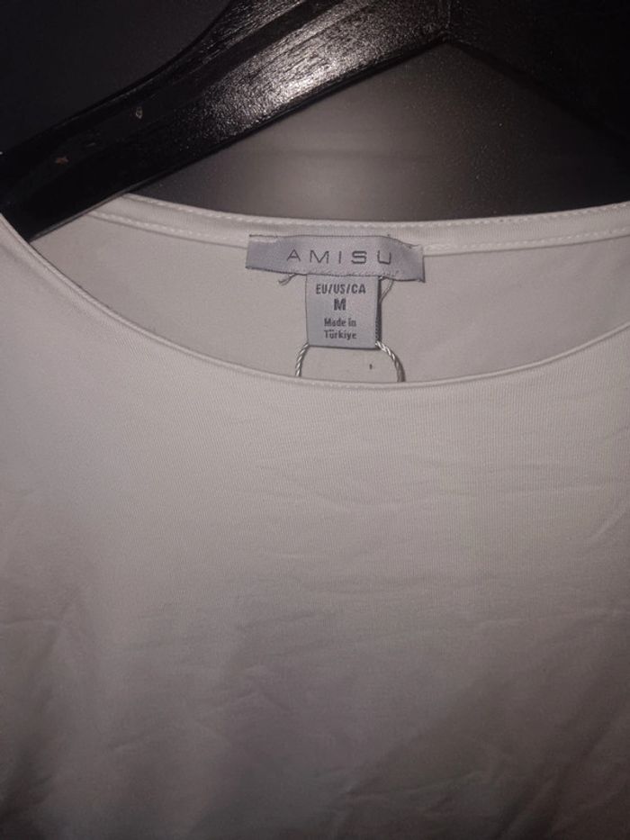 Body blanc à manches longues, col rond, marque Amisu, taille M. En tres bon état général, idéal pour un usage quotidien ou comme sous-vêtement.