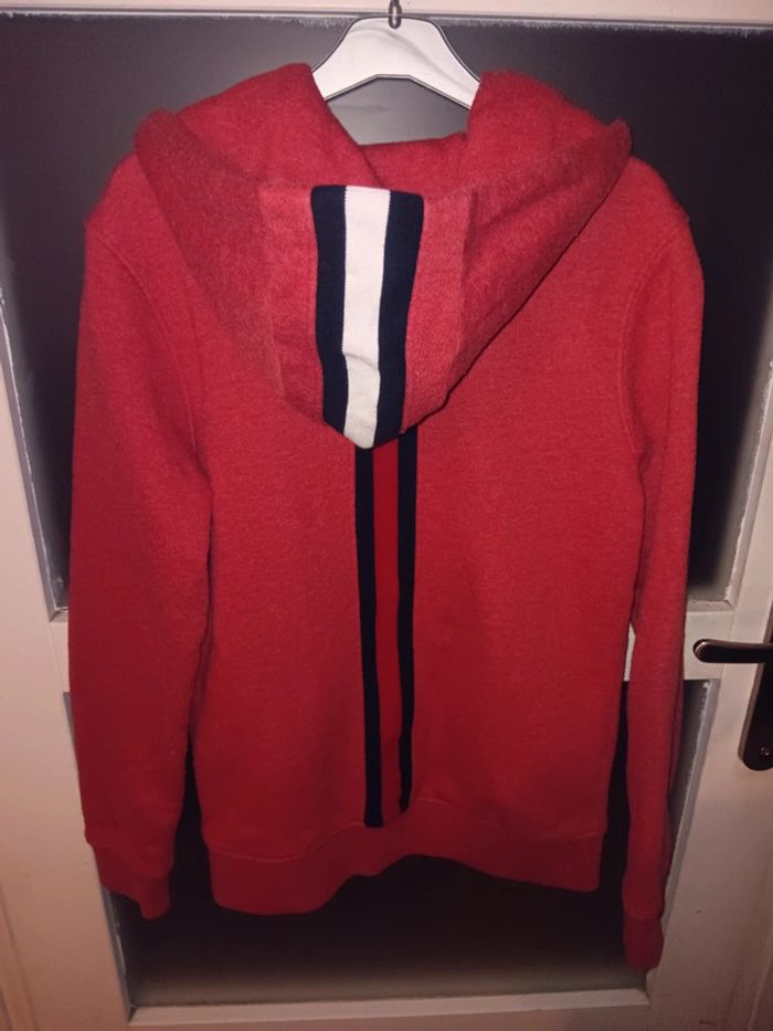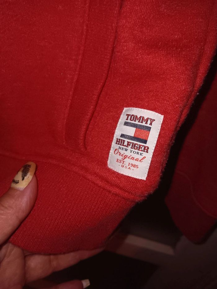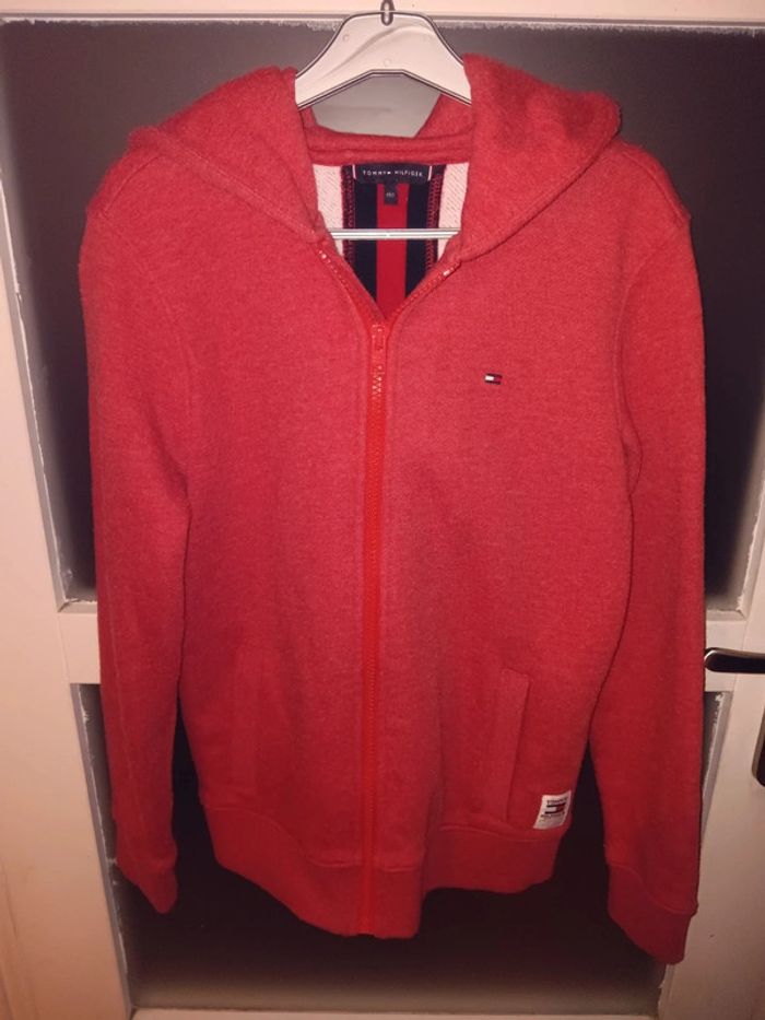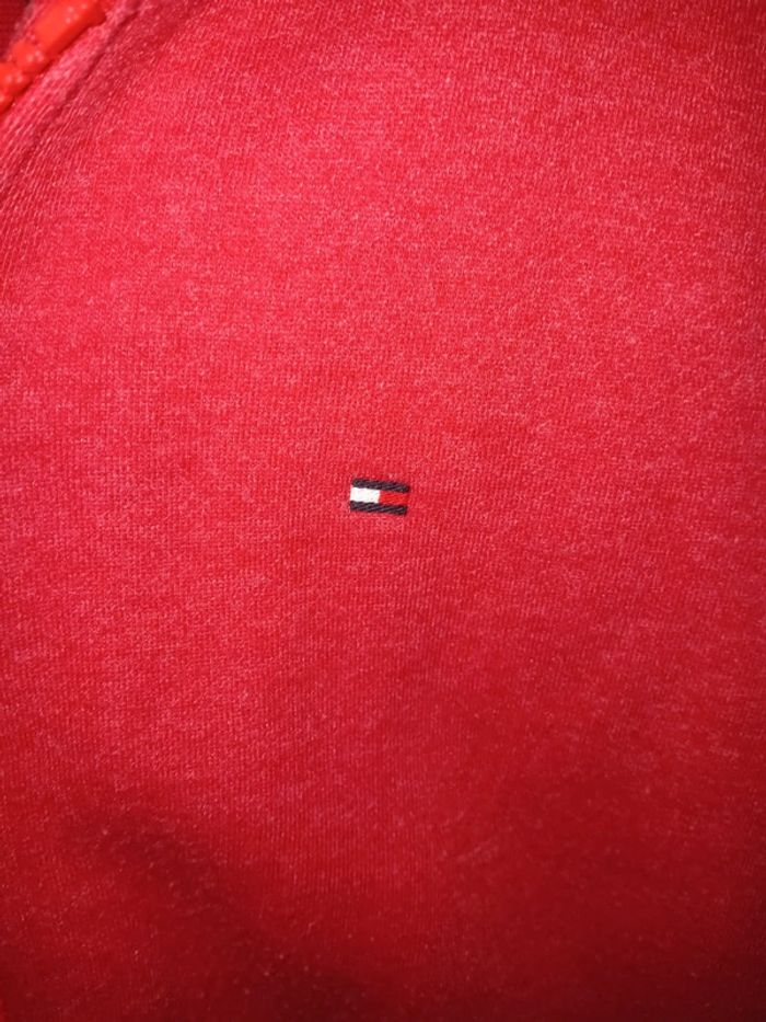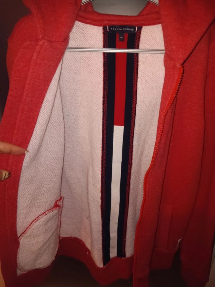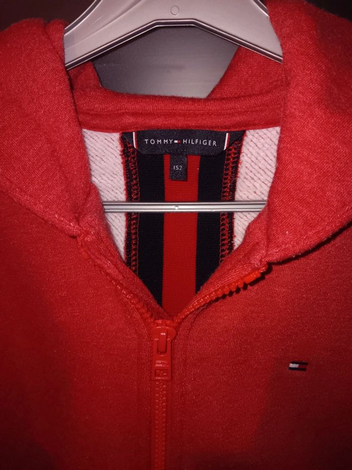 Gilet à capuche 12 ans en tres bon état général, avec une couleur rouge vive. Marque Tommy Hilfiger