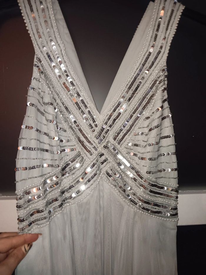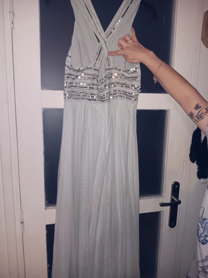 Robe de soirée taille 38 longue avec sequins argenté - photo numéro 3