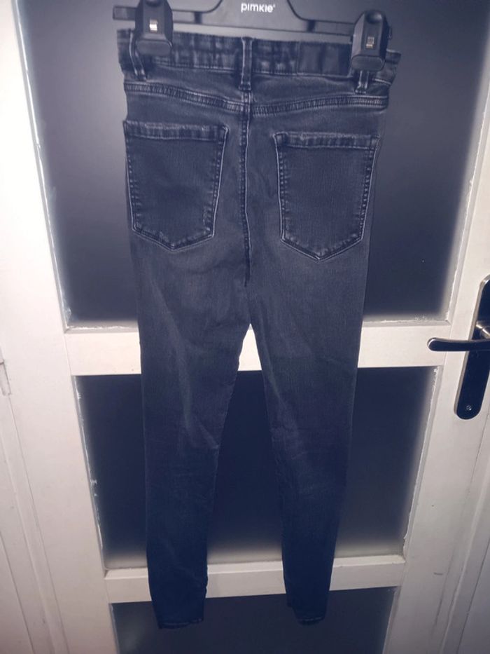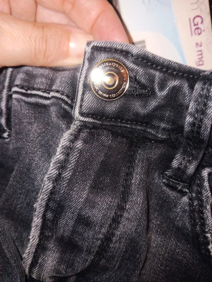 Jean skinny noir de la marque Stradivarius en tres bon état général. Un petit trou sur la haut de la cuisse gauche fait exprès pour un look décontracté