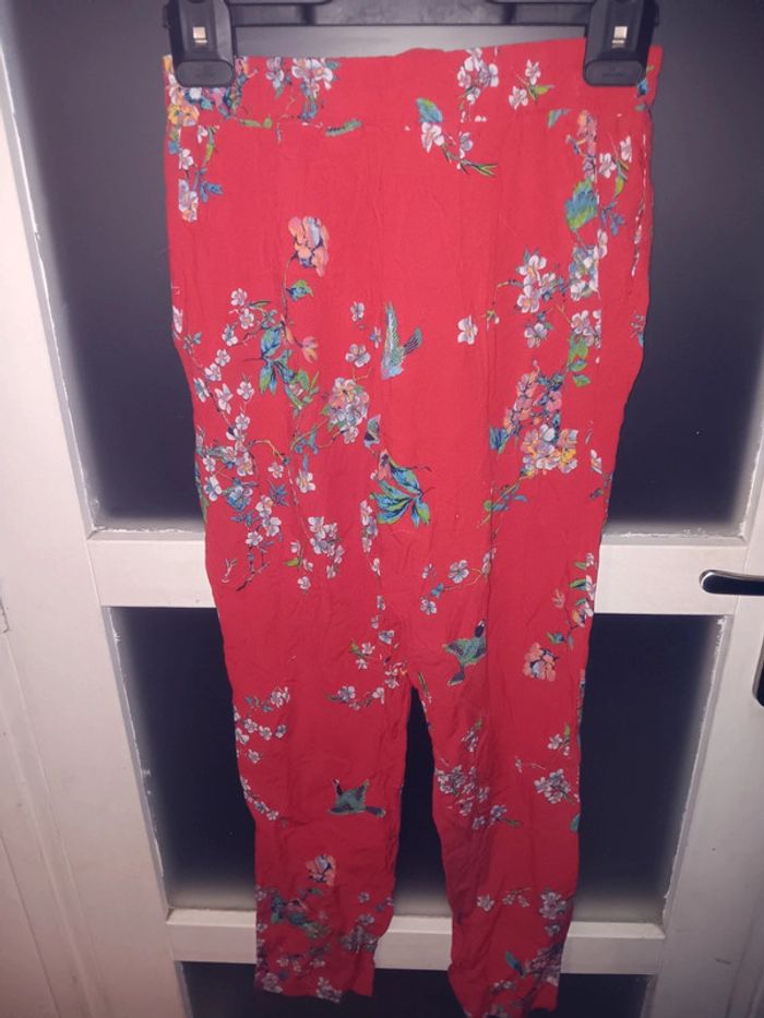 Pantalon fleuri rouge Pimkie taille xs - photo numéro 1