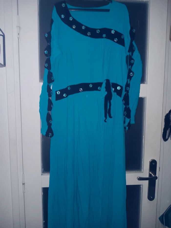 Robe longue bleu avec ornements taille m - photo numéro 5