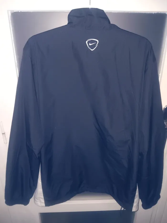 Veste de sport Nike noire, modèle coupe-vent, taille XL, avec logo blanc brodé. État tres bon, matière légère, idéale pour l’entraînement ou le quotidien.