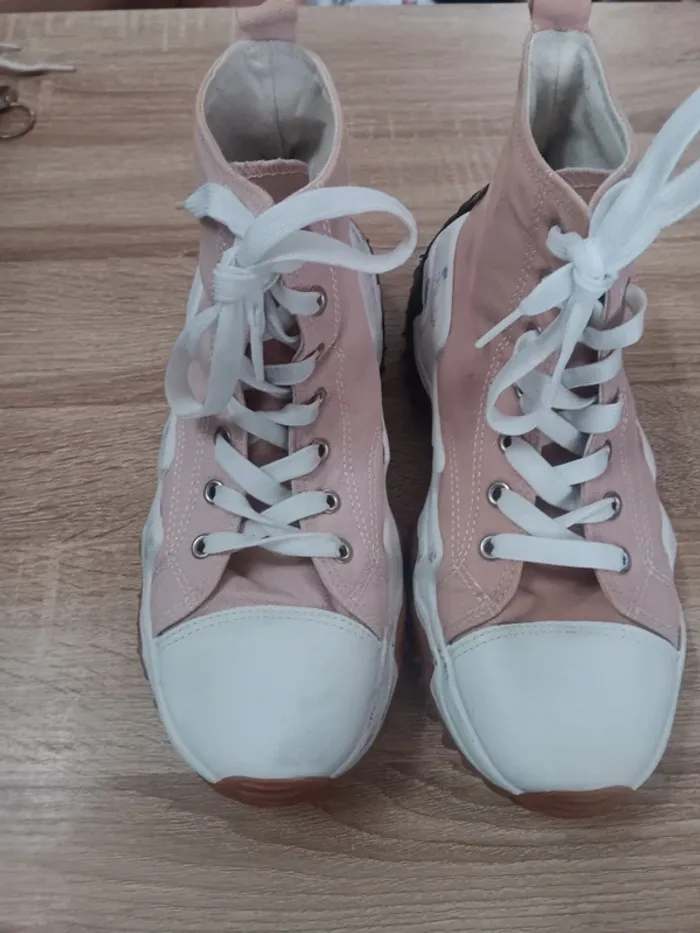 Baskets montantes rose semelle crantée tendance taille 39 - photo numéro 1