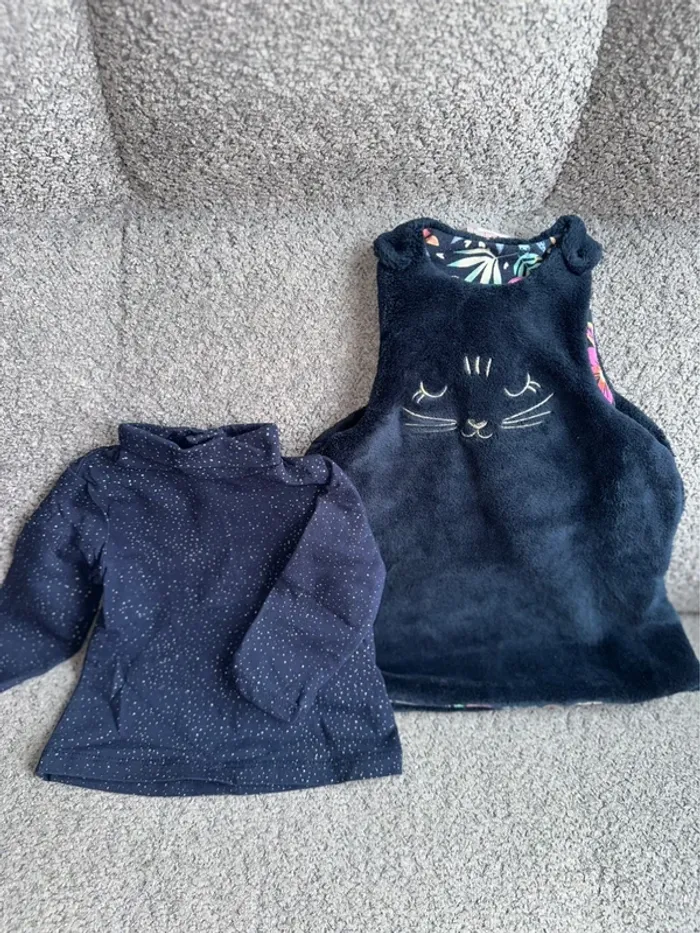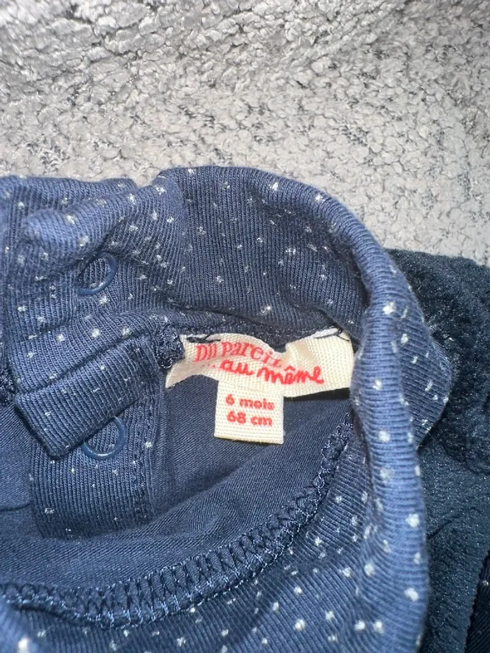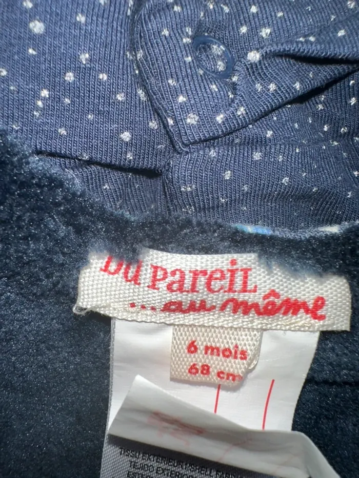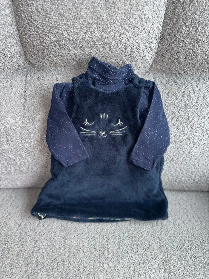 Ensemble robe toute douce polaire pilou pilou + sous pull manches longues de chez Du Pareil au Même. La robe est réversible. L'ensemble est neuf, jamais porté. C'est une taille 6 mois. Maison non fumeur et sans animaux.