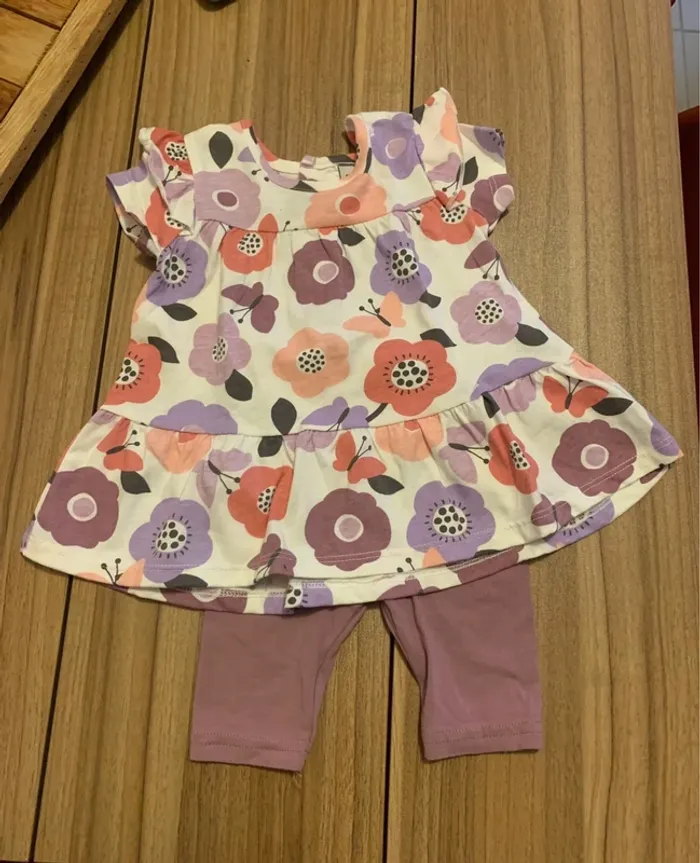 Ensemble tunique à manches courte et legging violet #lilauna6moisfille