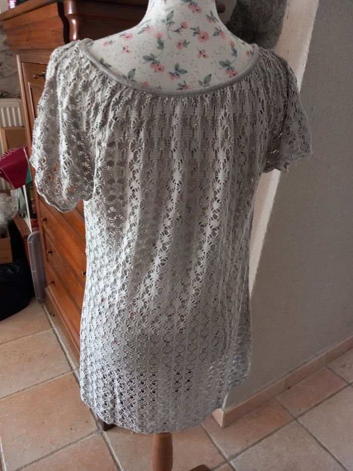 Tee-shirt plus long derrière que devant aisselle à aisselle 50 cm.