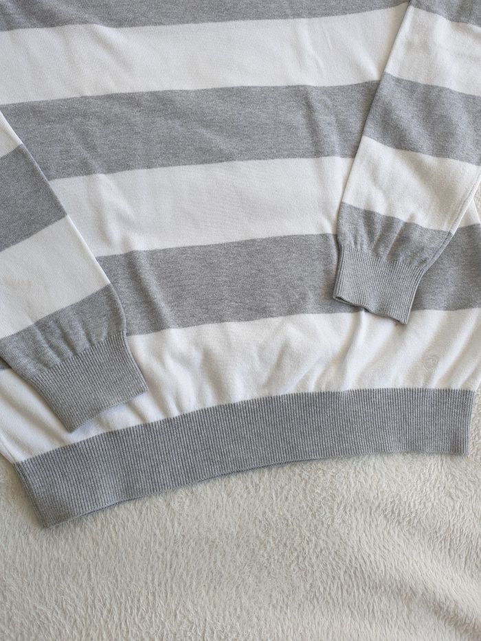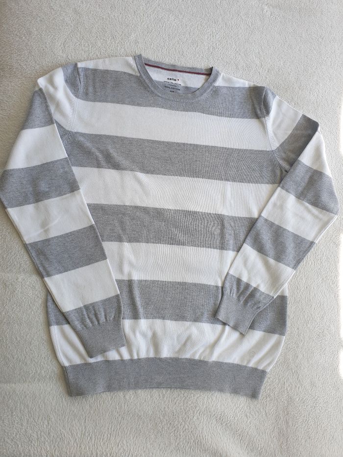 Sweat shirt homme. Taille L. A lignes blanches et grises. Élastiques en bas des manches et du Sweat.
