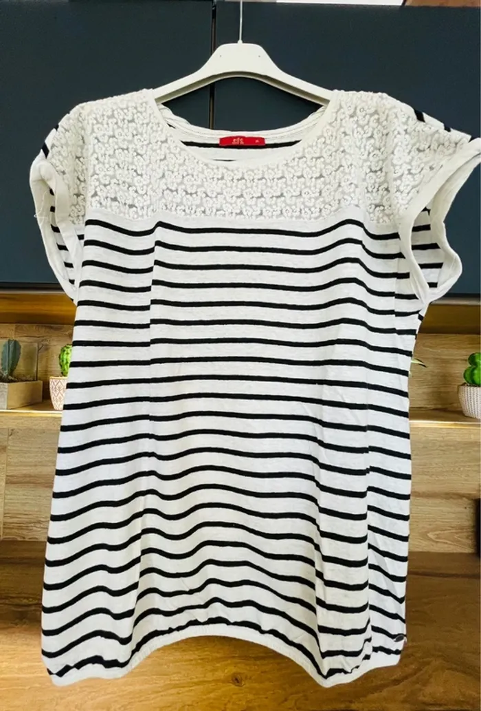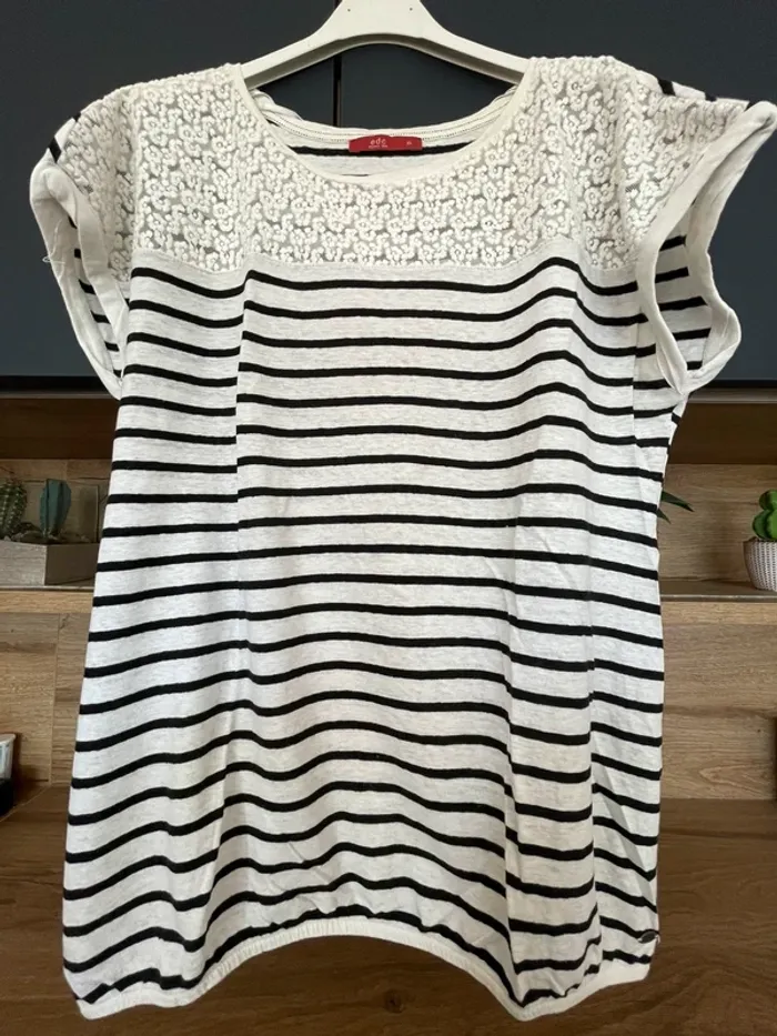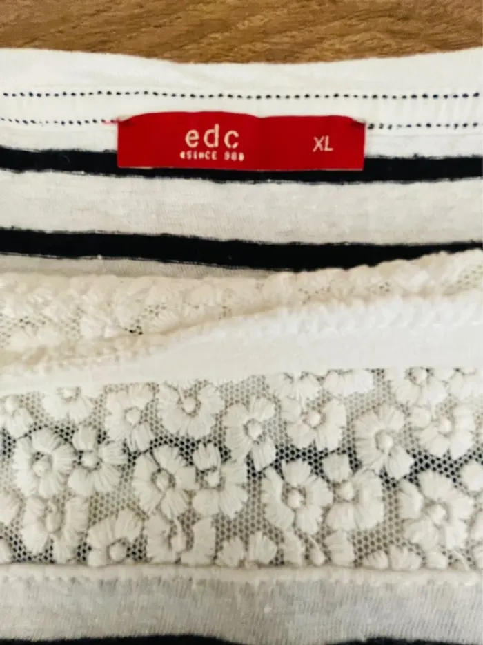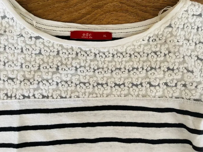 Teeshirt marin edc Since 98 avec dentelles sur la poitrine. Taille XL, aisselle à aisselle 52 cm, longueur 64/65 cm Élastique au bas