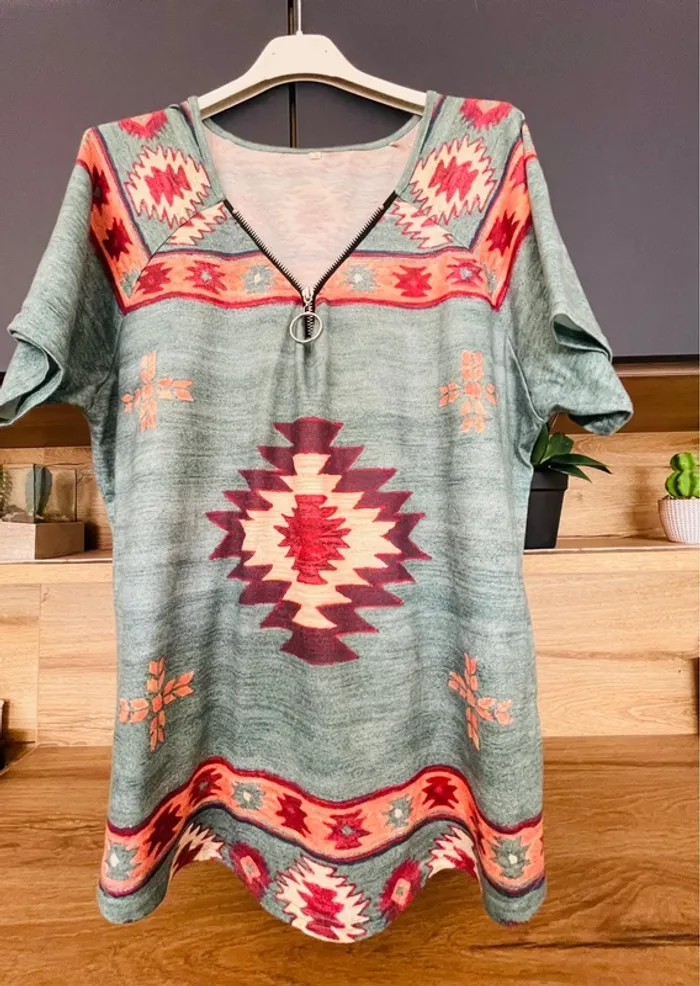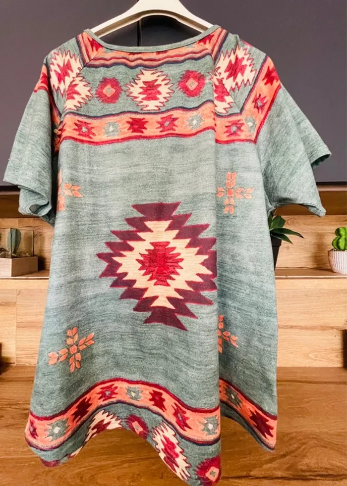 Je ne connais pas la marque. Teeshirt style Mexicain Indien. Taille XXL aisselle à aisselle : 55 cm, longueur : 68 cm Peut-être 44/46