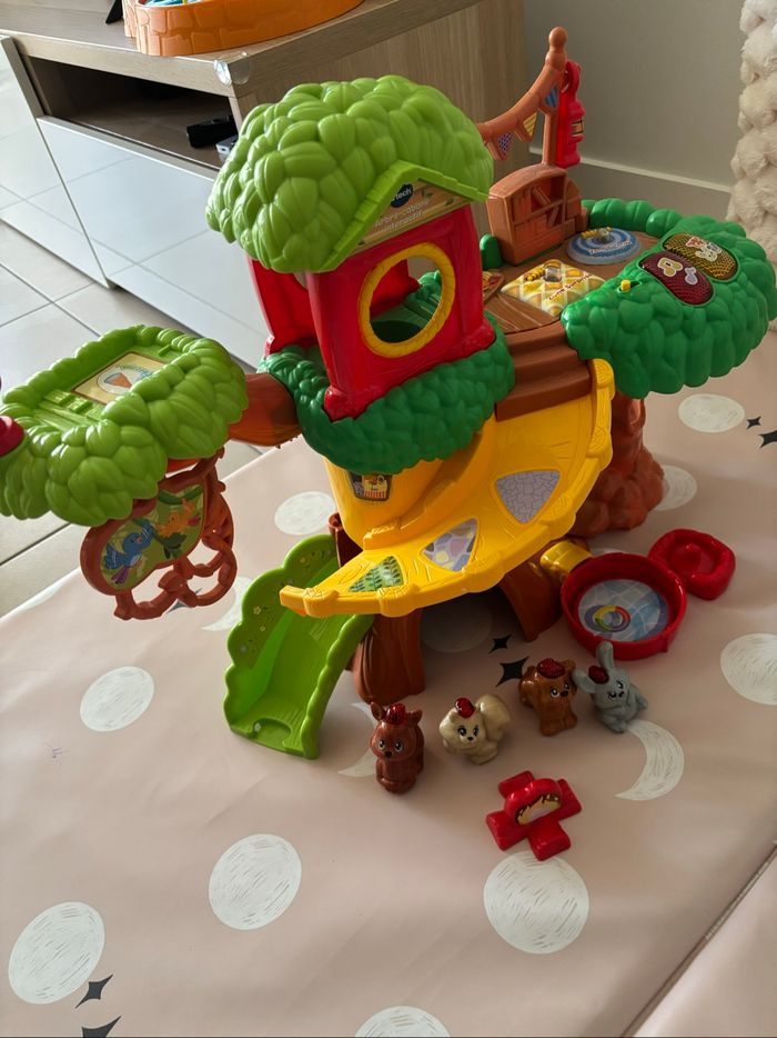 Bonjour, Nous nous séparons de l’arbre interactif de notre fille. Il a été déballé, monté mais est neuf et fonctionnel. Nous n’avons plus le carton. Prix 25€ Bonne journée.
