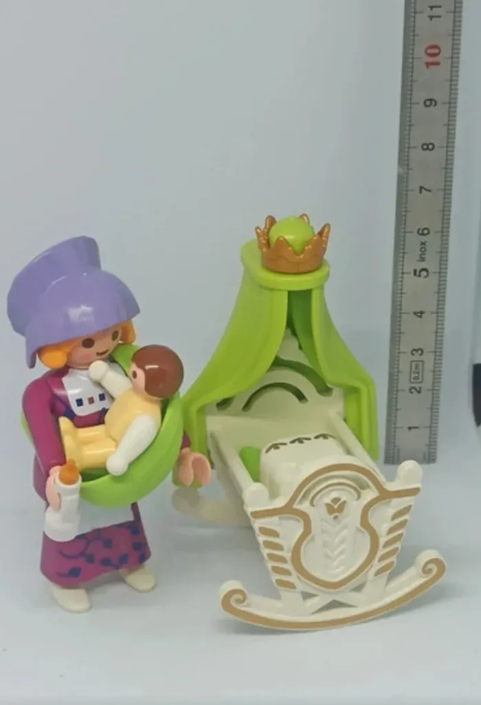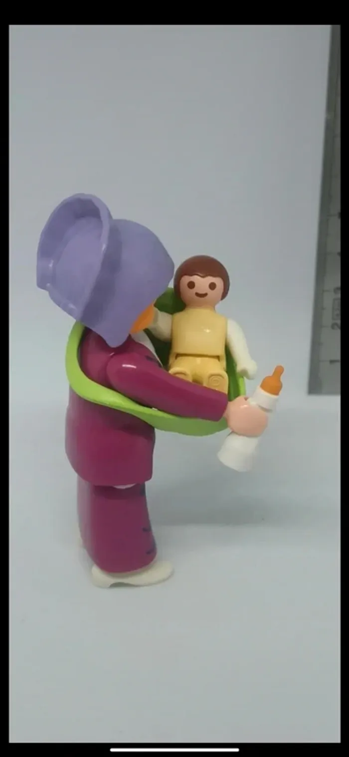 Femme nourrice avec bébé en porte bébé et son berceau playmobil - photo numéro 1