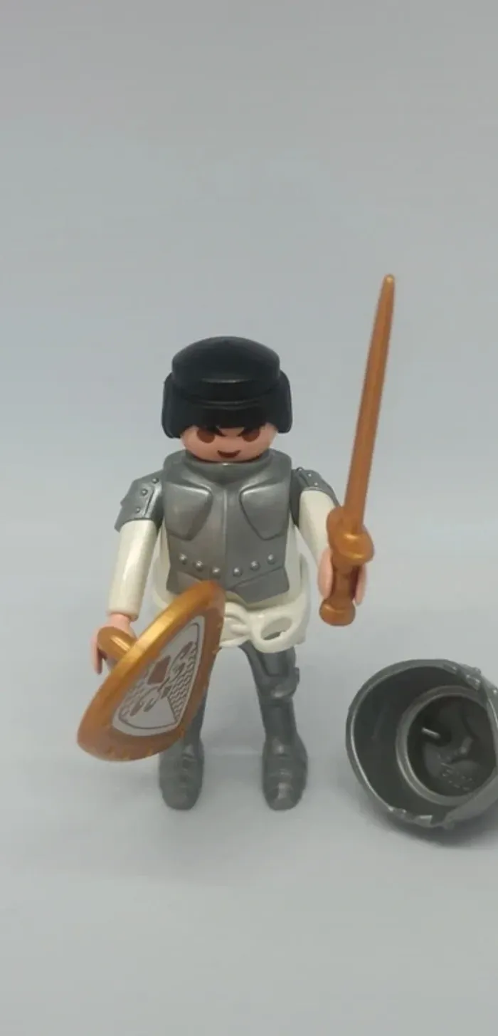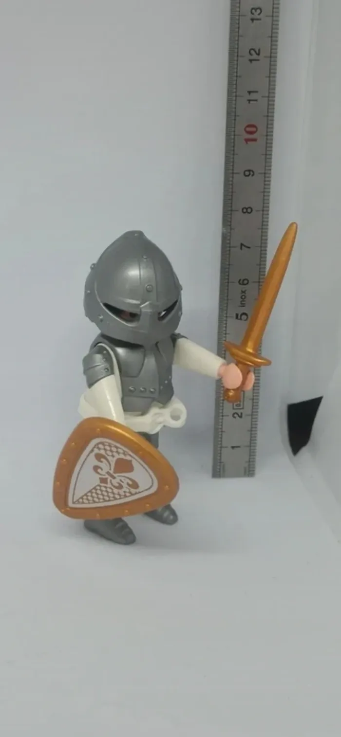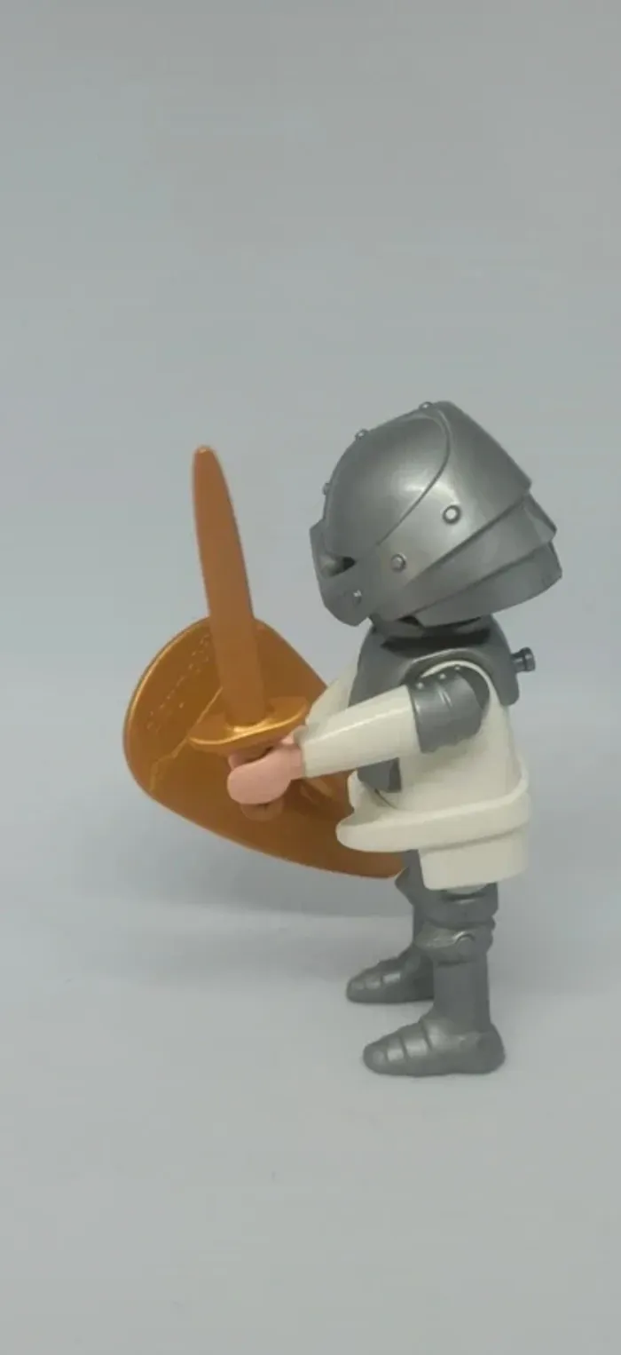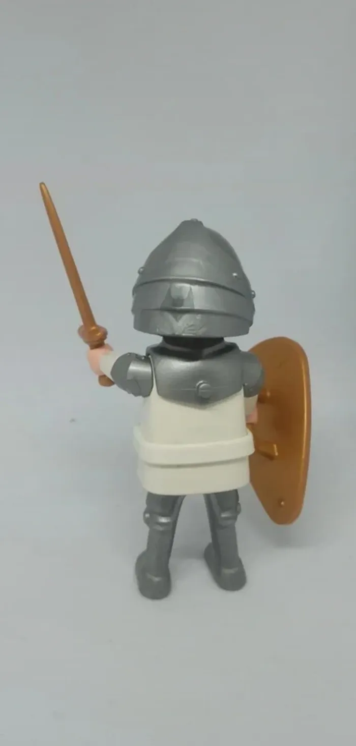 Homme chevalier armure blanche avec bouclier doré playmobil - photo numéro 1