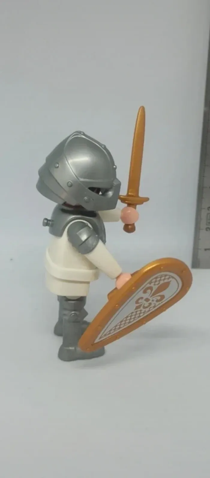 Homme chevalier armure blanche avec bouclier doré playmobil - photo numéro 3