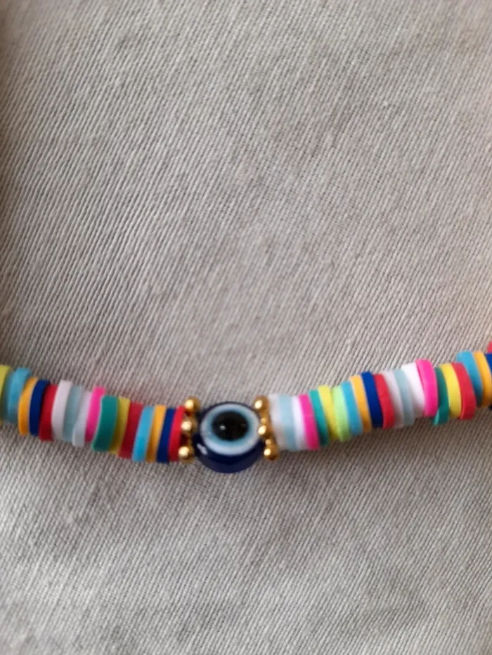 Collier perle,coquillage ,oeil bleu - photo numéro 3